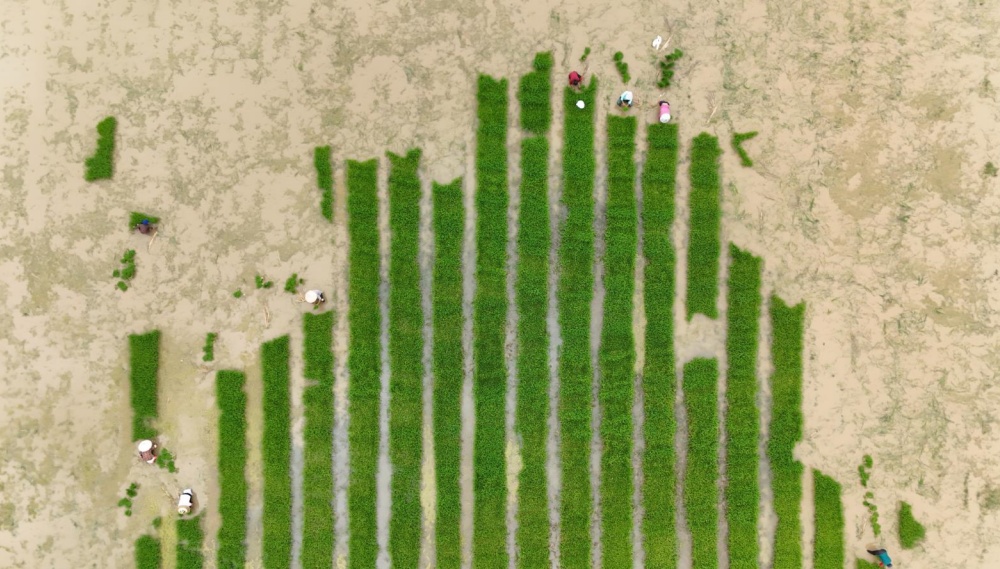 夏風輕拂,在岑鞏縣羊橋鄉(xiāng)的龍灣壩區(qū),蜿蜒的水渠如銀帶般貫穿田壟,村民俯身移栽秧苗的身影,在粼粼水田間連成流動的風景線,傳遞著豐收的希望。