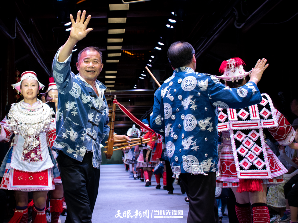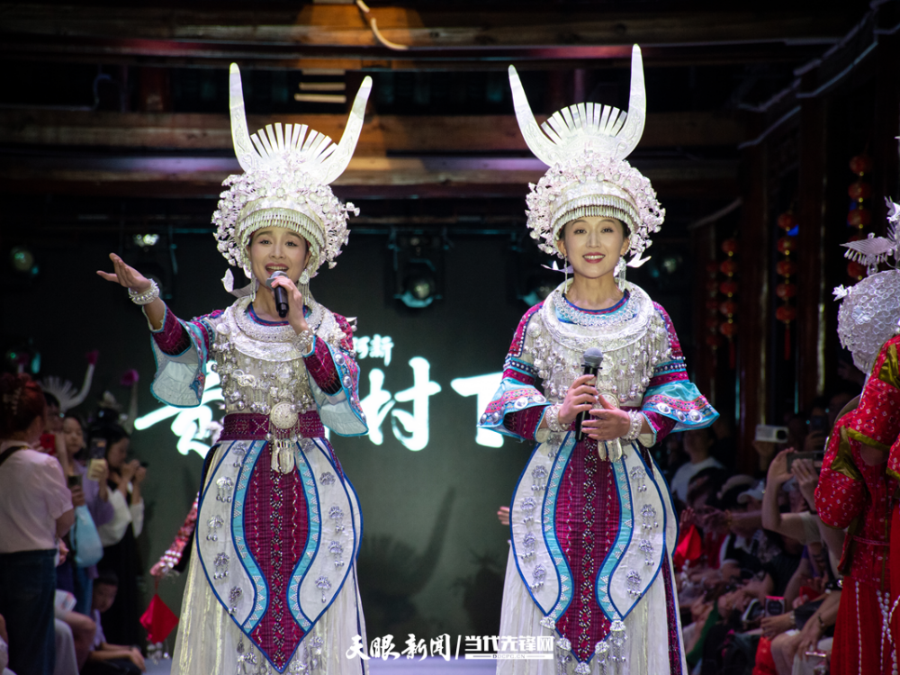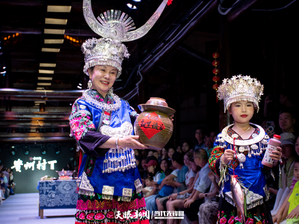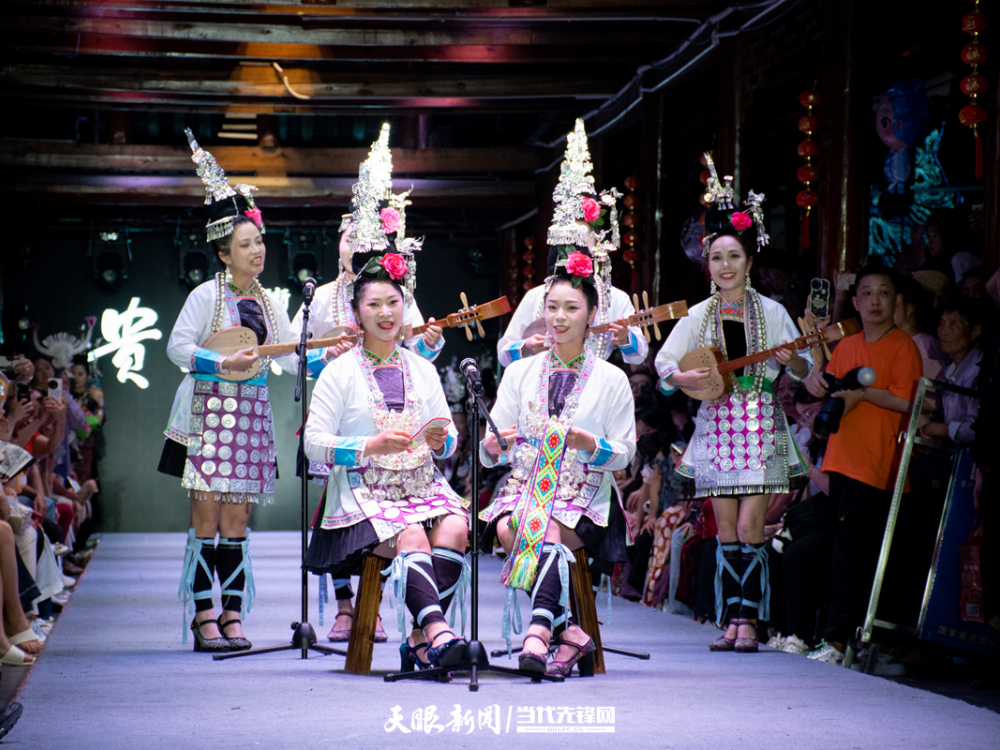 6月15日晚,貴州“村T”在凱里市民族風情園精彩上演。20位國家級、省級、州級、市級非遺代表性傳承人穿著民族服飾,走上“村T”舞臺,展示他們的非遺作品和成果,充分展現(xiàn)了非遺的獨特魅力和民族文化的風采。當晚,《巨洞琵琶歌》《苗族古歌》《千年霓裳》《反排木鼓舞》《酸湯走秀》等一個個精彩的節(jié)目掀起陣陣熱潮,為觀眾呈現(xiàn)了一場聽覺和視覺的盛宴。