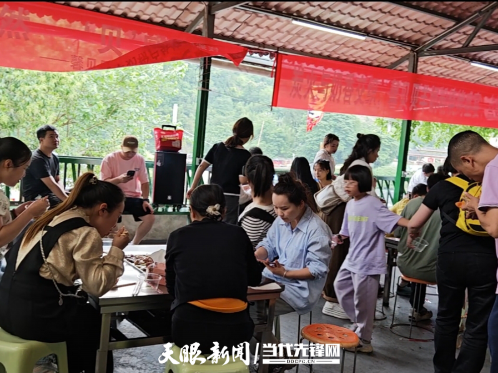 “清水江和鴨塘河在普舍寨匯合,河里水質(zhì)干凈,夏天到了,很多游客都喜歡來我們這邊游玩,游客也可自帶食材,我們提供加工,生意好的時候一天有20多桌,一個夏天能給我們帶來10多萬的營收額!”菩薩寨山莊老板楊光秀高興地說。