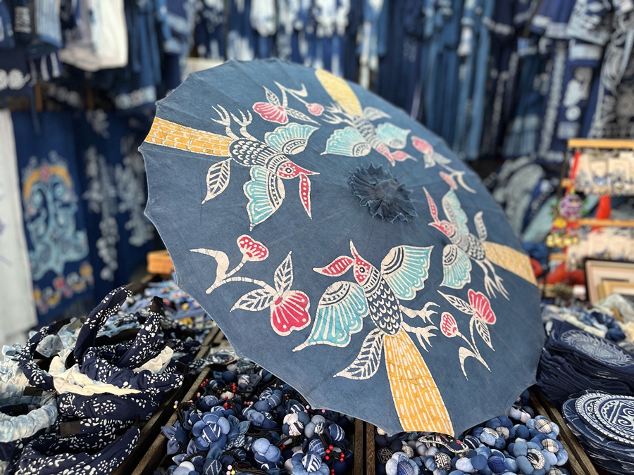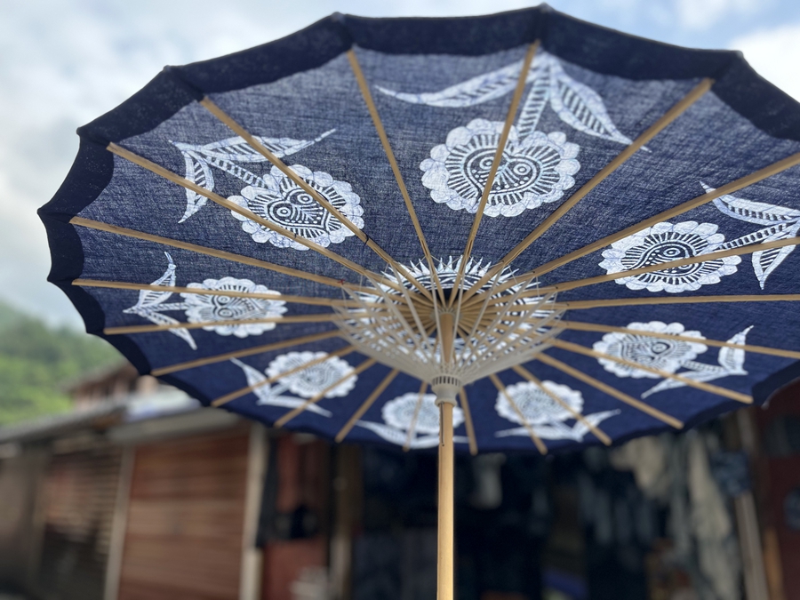 走進(jìn)繡里淘集市,琳瑯滿目的民族文化商品讓人目不暇接。其中,蠟染傘和苗繡元素帽子、發(fā)卡等商品尤為吸睛。蠟染傘色彩斑斕、圖案精美,不僅是遮陽(yáng)的實(shí)用工具,更成為當(dāng)下年輕人熱衷攜帶的拍照“神器”,為集市增添了別樣的藝術(shù)氛圍。