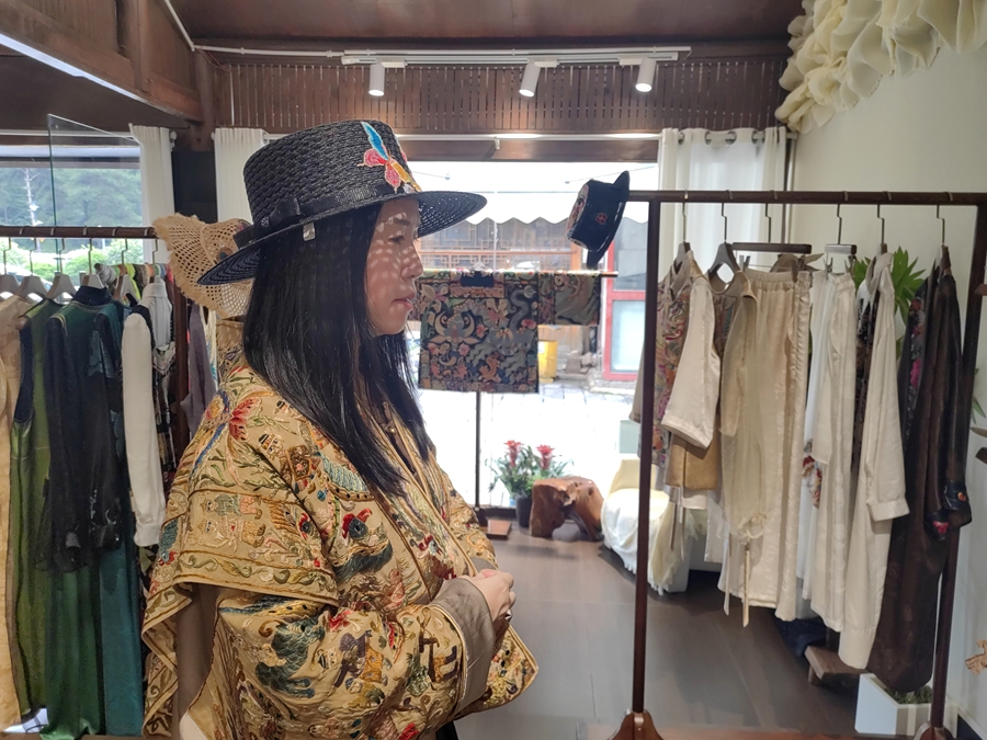 如今,這些時(shí)尚的苗族文化元素帽子已成為很多年輕人追捧的時(shí)尚單品,阿朵苗繡店也憑借這些特色帽子成為繡里淘集市一條街的時(shí)尚打卡點(diǎn)。不少外地游客通過(guò)小紅書等社交平臺(tái)慕名而來(lái),在店內(nèi)試戴帽子、拍照打卡。來(lái)自北京的王女士試戴后激動(dòng)不已,她表示:“沒(méi)想到苗族的元素這么好看、百搭,放在帽子上竟有如此出其不意的效果。繡里淘集市就像一個(gè)露天博物館,能在這里看到民族文化的各種精品,希望以后每年都有機(jī)會(huì)來(lái)凱里旅游?!?/p>