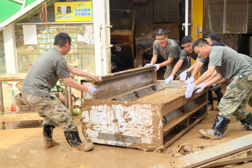 6月25日,三穗縣迅速集結(jié)140余名基干民兵組成增援隊(duì)伍,火速奔赴榕江支援災(zāi)后清淤重建工作。抵達(dá)后,他們未作停歇便立即投入作業(yè),分赴城區(qū)受災(zāi)嚴(yán)重的重點(diǎn)區(qū)域展開清淤工作。汗水浸透了衣衫,淤泥沾滿了褲腿,但他們毫無怨言,爭(zhēng)分奪秒地清理著被淤泥覆蓋的街道和商鋪。
