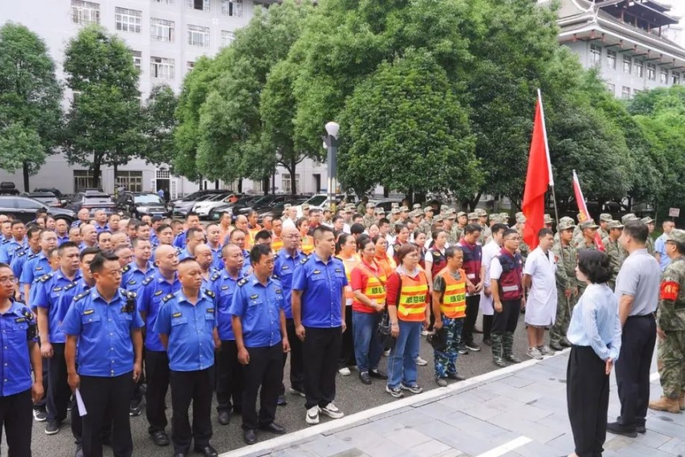 6月25日上午8時(shí),劍河縣舉行簡樸而莊重的抗洪搶險(xiǎn)出征儀式,緊急集結(jié)200名救援隊(duì)員火速奔赴榕江縣支援抗洪搶險(xiǎn)。這支隊(duì)伍由消防、醫(yī)療、應(yīng)急、武警、綜合執(zhí)法等多個(gè)專業(yè)分隊(duì)組成,特別配備了鏟車、高壓沖洗車、抽水泵等大型設(shè)備。他們將重點(diǎn)開展群眾轉(zhuǎn)移、堤防加固和清淤排澇等工作,為榕江縣的抗洪搶險(xiǎn)工作提供了有力支持。