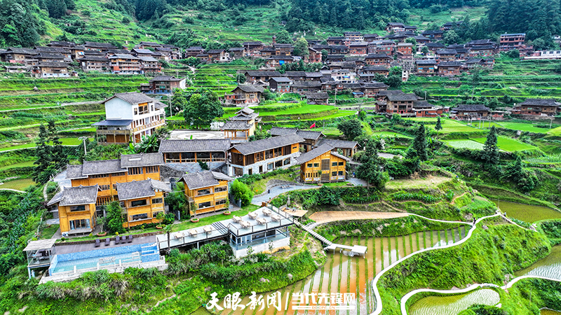 借勢公路輻射,白巖村加速完善旅游配套,沿線新建梯田觀景臺、非遺工坊和特色農(nóng)產(chǎn)品直營點,魚醬酸、黑毛豬臘肉等特產(chǎn)通過服務區(qū)銷往全國。2018年,中國三星與中國鄉(xiāng)村發(fā)展基金會啟動“分享村莊”項目,為白巖村注入振興動能。依托梯田云海與苗族風情,村里將閑置吊腳樓改造為高端民宿“牧云澗”,民宿從一期16間房擴至四期67間,帶動16名村民就地就業(yè)。