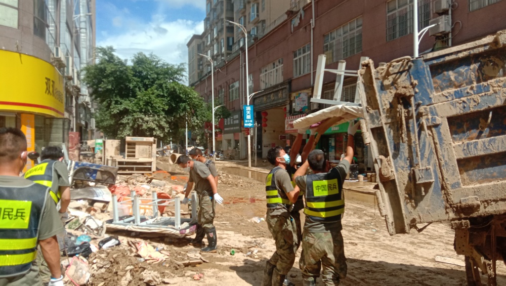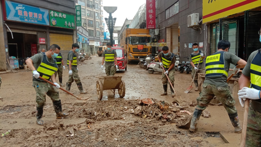 跟隨著清淤隊伍,走過一個個商鋪,路過一條條街巷,清理一堆堆垃圾,我們見證了人民子弟兵忠于職守,為民服務(wù)的愛民情懷。