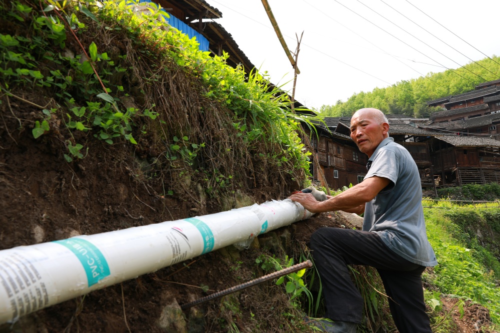 飲水工程:解數(shù)年“渴”望。為徹底解決季節(jié)性缺水,許世均帶著技術(shù)人員翻遍山頭,尋找穩(wěn)定水源,讓村民不再為喝水發(fā)愁?!耙郧半m然有自來水,但是不夠用,經(jīng)常要挑水喝,許書記來過后給我們增建水池,每個(gè)自然寨都有兩個(gè)備用水池,現(xiàn)在的水足夠了,一開水龍頭就有水喝,很方便?!贝迕衽讼檠嗾f。