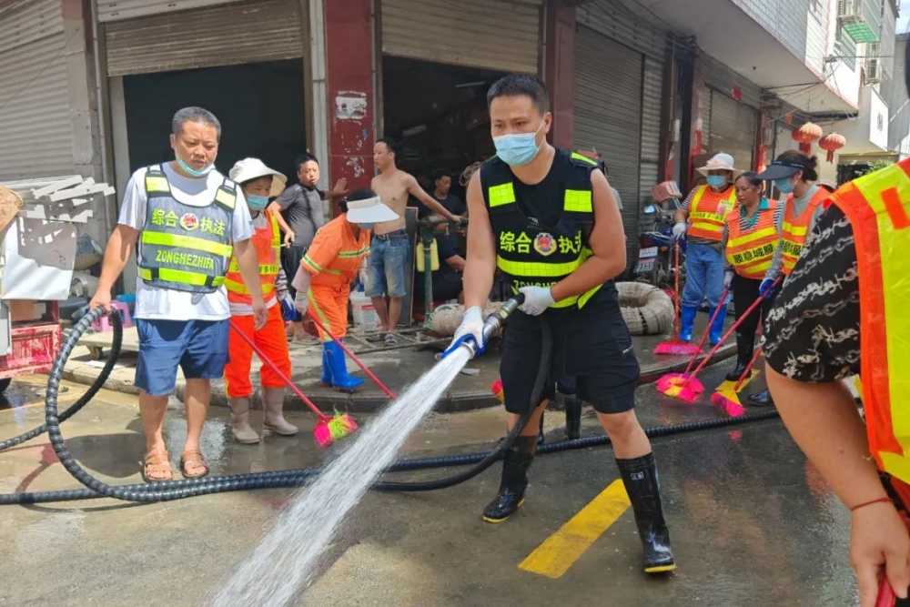 “剛抵達(dá)榕江時,在無工具、無防護(hù)的情況下,隊員們徒手搬運(yùn)桌椅,用鐵鍬摳挖凝固淤泥;高壓水槍沖洗時,泥漿濺滿全身也毫不在意,手推車磨破肩膀仍不停歇;醫(yī)療組的同志每天要在各個安置點(diǎn)之間奔波,為受災(zāi)群眾巡診送藥,有時一天只能休息三四個小時;為避免商戶損失,我們的隊員徒手分揀腐爛瓜果,雙手被果汁泡得發(fā)皺……大家心里只有一個念頭,就是早點(diǎn)讓榕江的鄉(xiāng)親們恢復(fù)家園?!眲涌h綜合行政執(zhí)法局局長李代虎回憶起馳援的日日夜夜,聲音幾度哽咽。