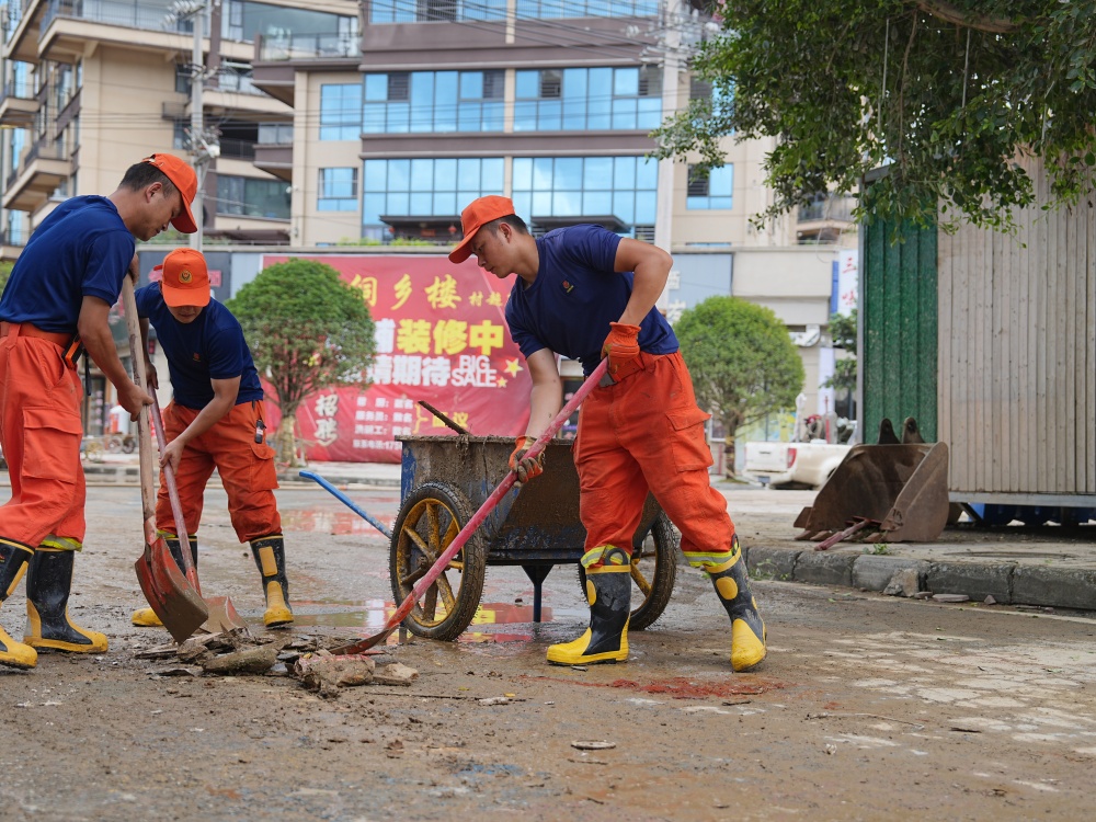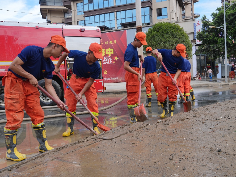 “第一天來(lái)的時(shí)候外面的淤泥非常厚,我們?cè)谇謇淼臅r(shí)候,劍河縣消防救援大隊(duì)提著水槍來(lái)我們這些鋪?zhàn)樱ぜ野暨M(jìn)行沖洗,把店鋪里外都搞得干干凈凈的,由衷地感謝他們!”榕江縣織金土烙鍋店店主盧斌提起當(dāng)時(shí)的場(chǎng)景,語(yǔ)氣里滿是感激。