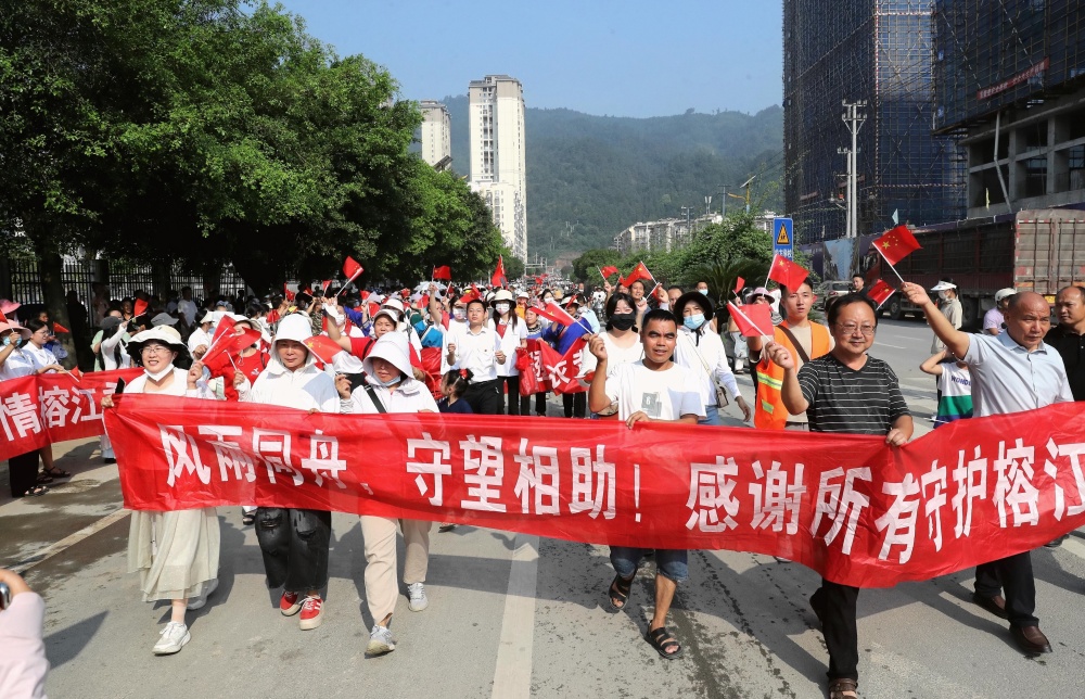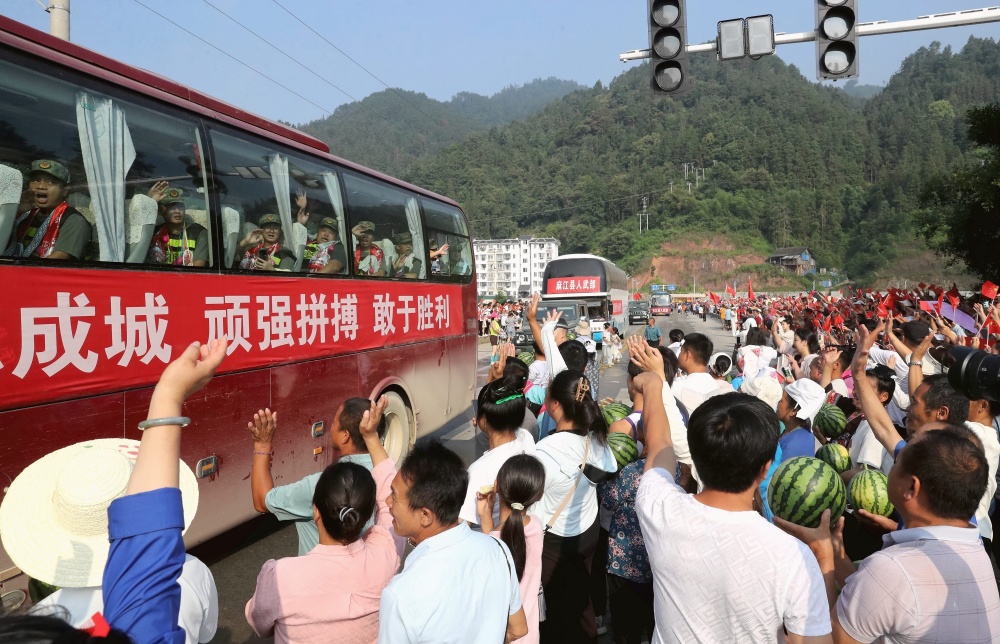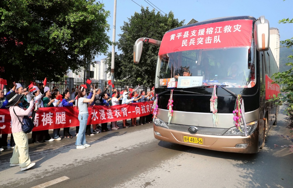 貴州榕江:群眾送別最后一批抗洪搶險救援民兵
