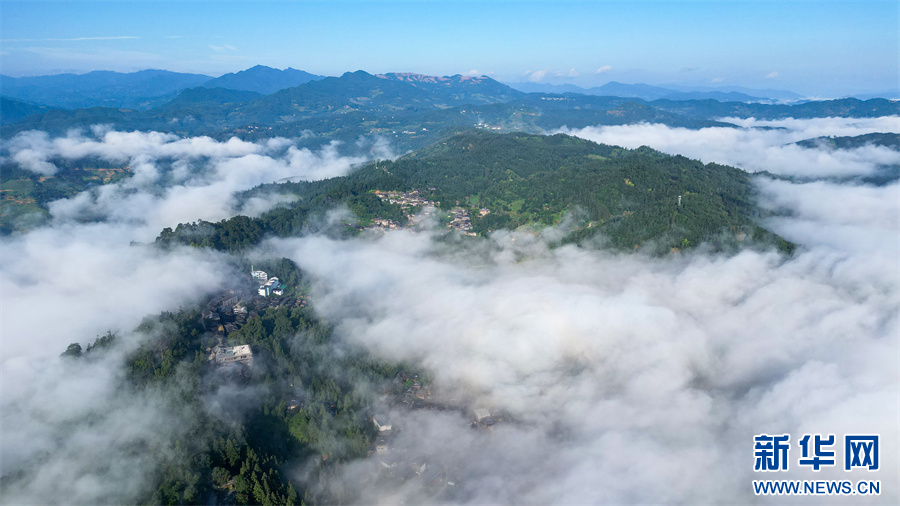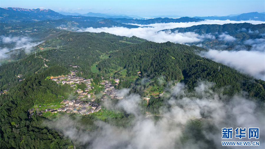 盛夏時節(jié),貴州省黔東南苗族侗族自治州從江縣丙妹鎮(zhèn)岜沙苗寨云蒸霞蔚,氣象萬千??~緲的云海輕撫著層疊的梯田,繚繞著鱗次櫛比的苗族吊腳樓。青翠的梯田、古樸的木樓與流動的云霧相映成趣,構成了一幅靈動飄逸、宛若仙境的水墨丹青。