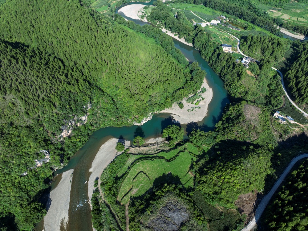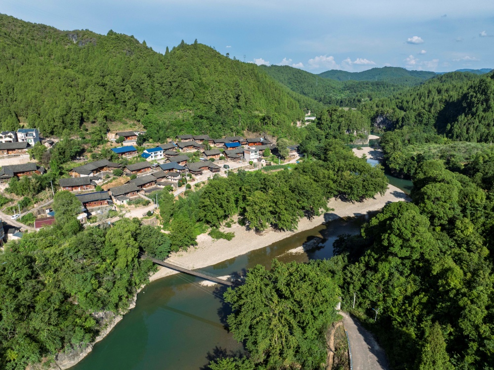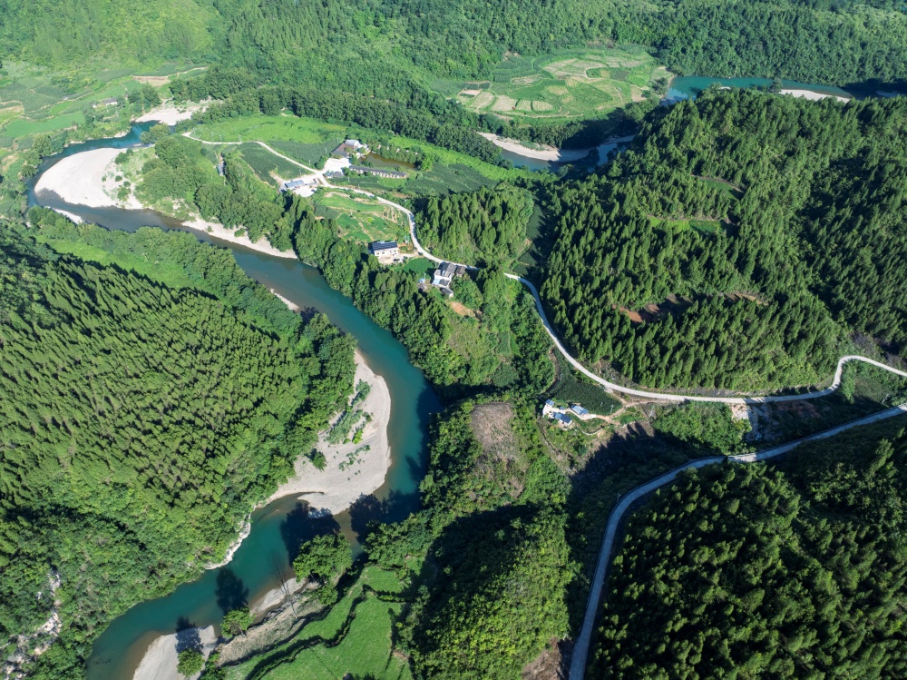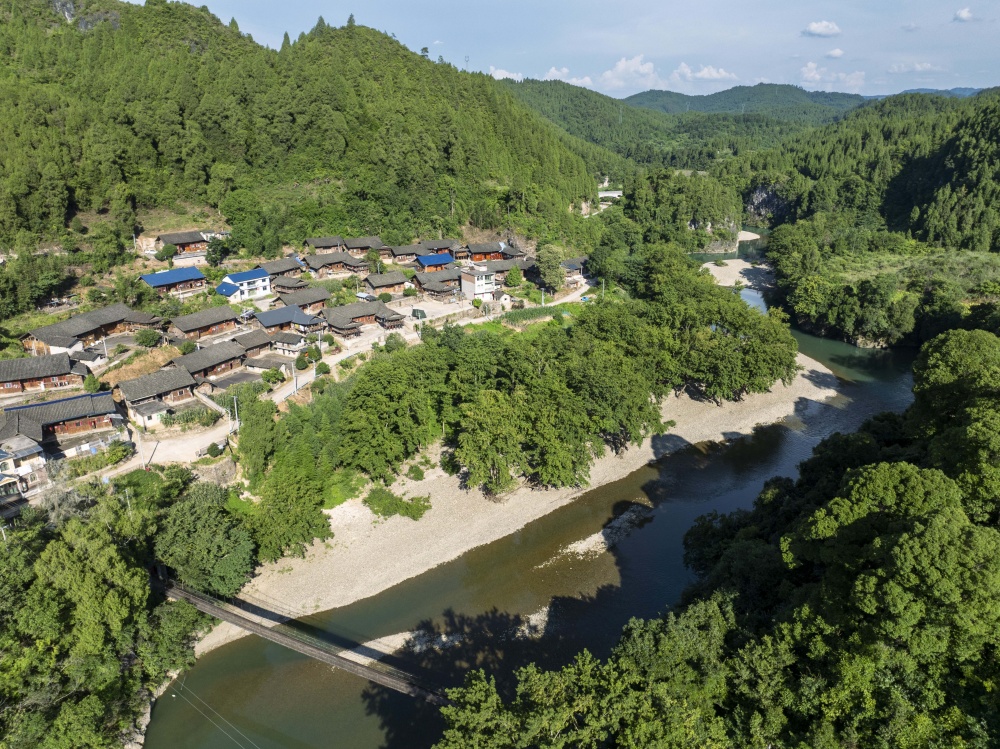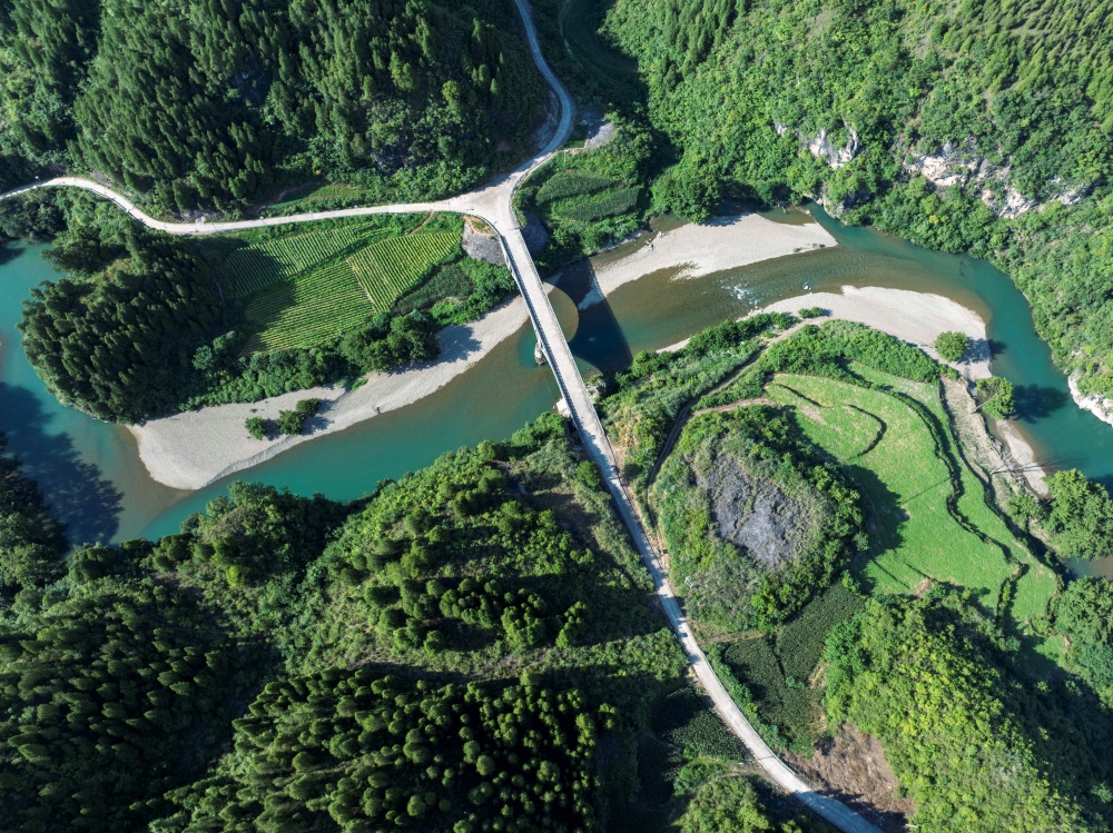 初夏時(shí)節(jié),在貴州省黔東南苗族侗族自治州岑鞏縣龍江河畔,森林、田園、公路、鄉(xiāng)村住房相映成趣,一幅幅宜居宜業(yè)的和美城鄉(xiāng)畫(huà)卷隨處可見(jiàn)。