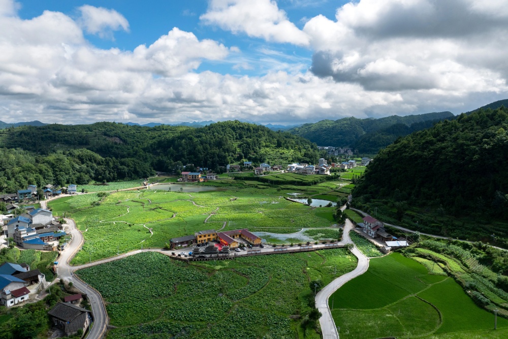 盛夏時(shí)節(jié),貴州省黔東南州岑鞏縣客樓鎮(zhèn)下寨村的三百畝荷花競(jìng)相綻放,與周邊的民居、公路、群山相映成趣,美不勝收。