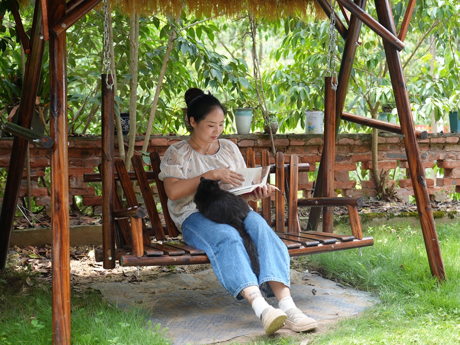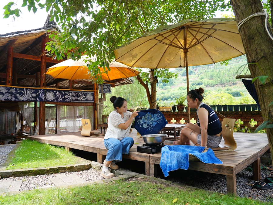 張樂潼的“慢策略”藏在細節(jié)里:客房里擺放著從周邊村寨收羅的老物件,庭院角落辟出一方菜園供客人采摘,每周舉辦的蠟染體驗課吸引著親子家庭參與。