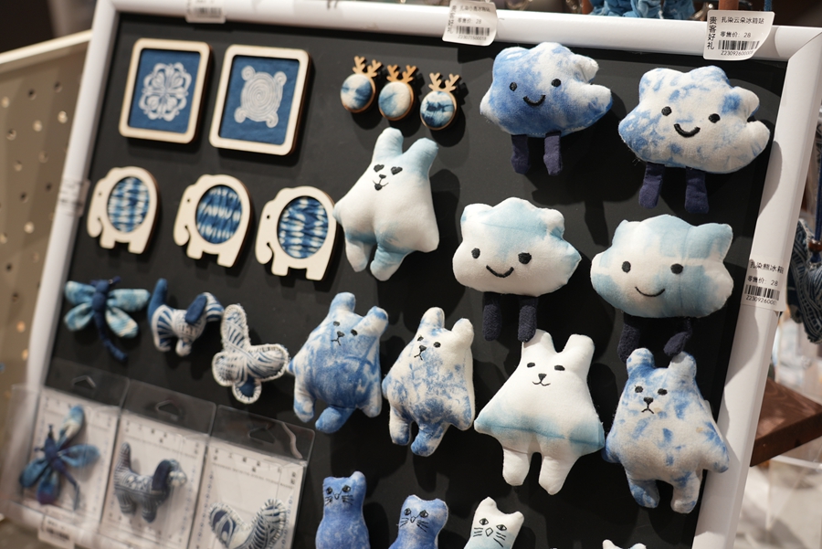 “一張方桌,幾匹素布,靜下心慢慢地勾勒圖案,慢慢地投入染缸,看著藍靛在清水中暈染出深深淺淺的云紋,人整個心都會靜下來?!睆垬蜂H自示范,指導客人。
