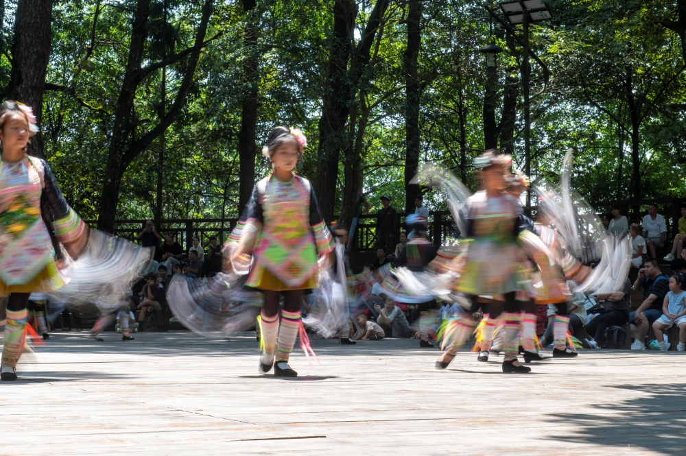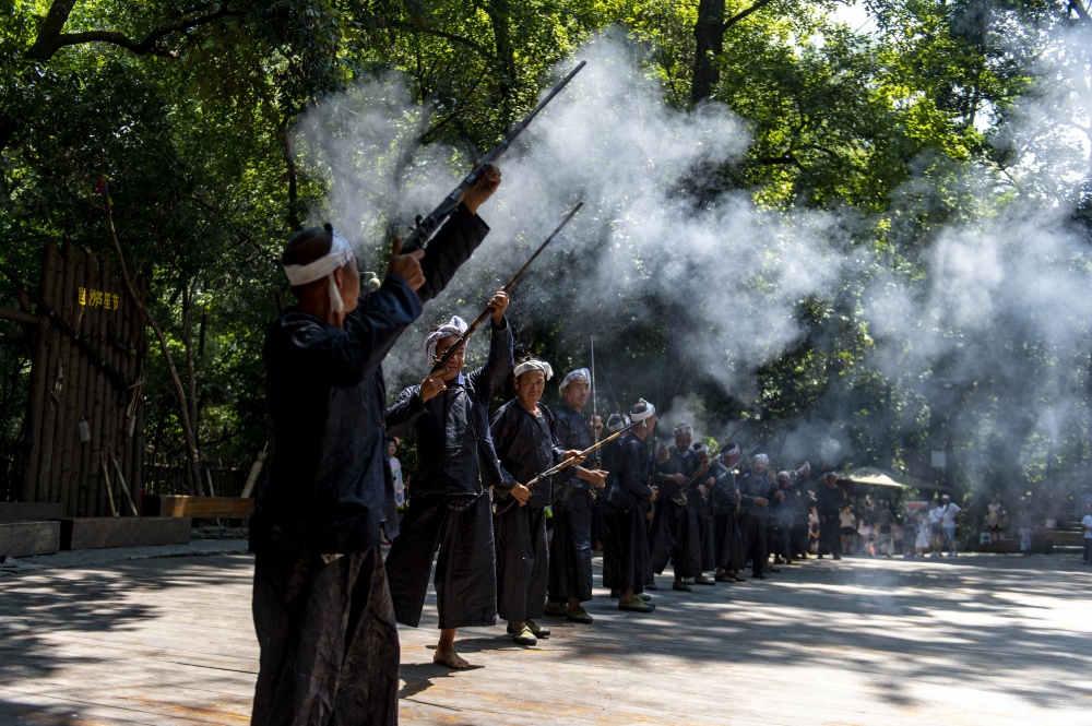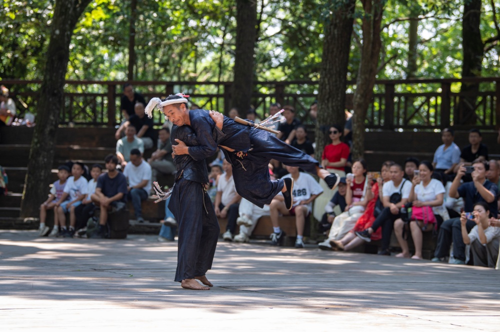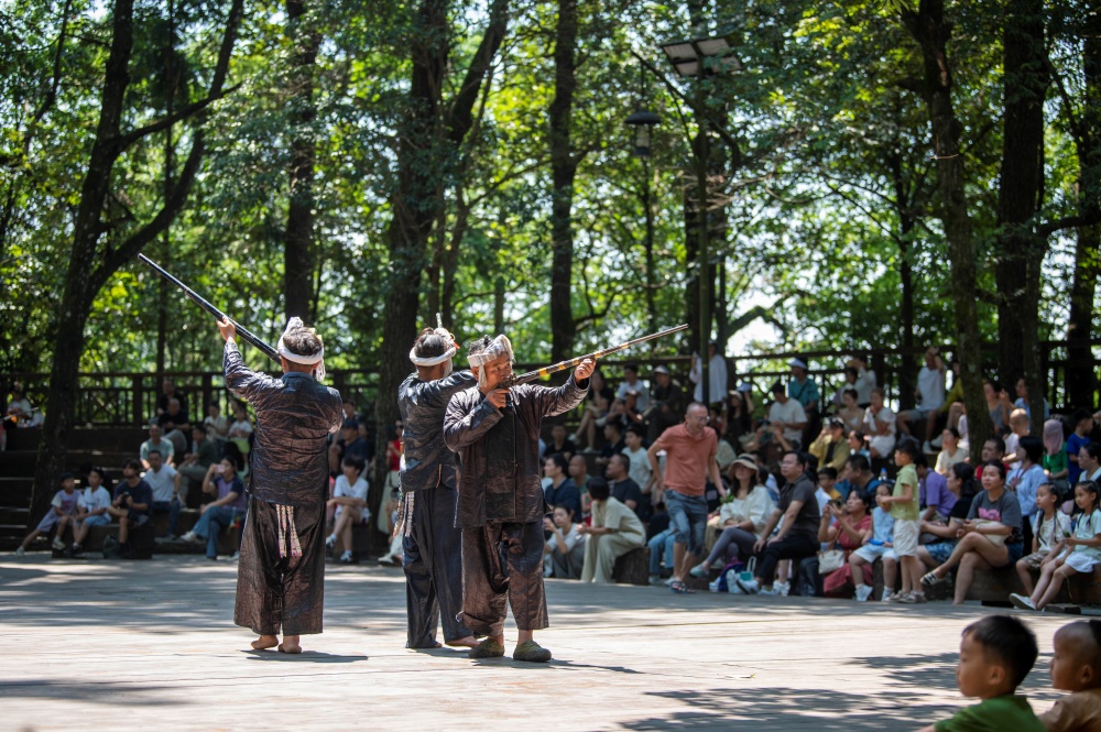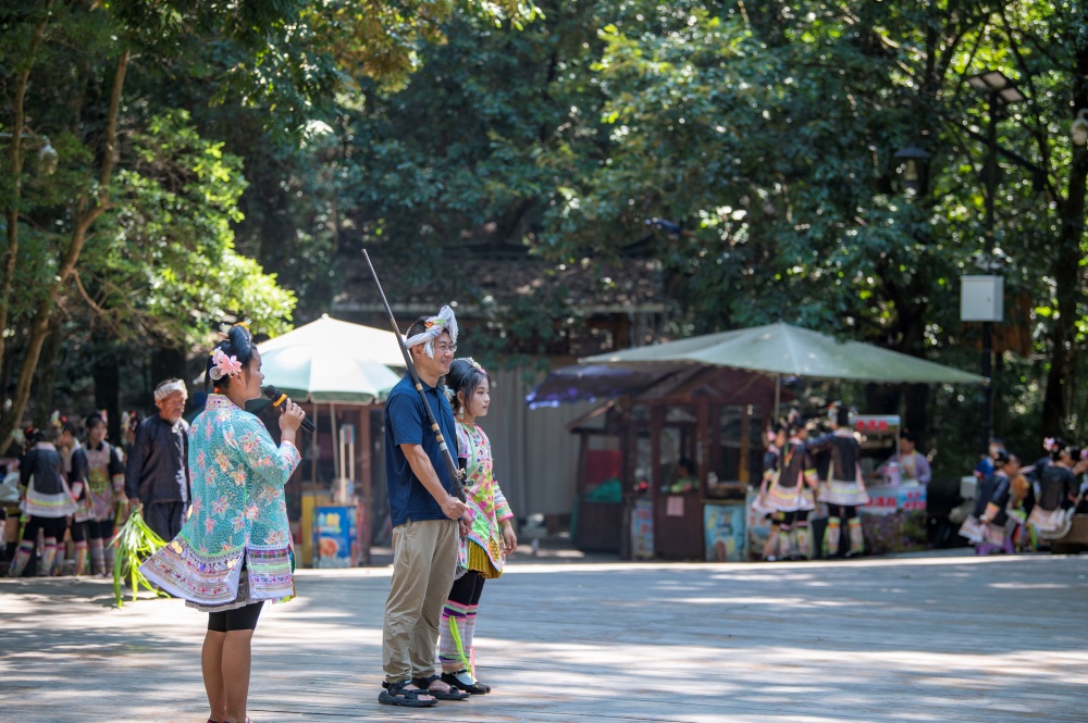 暑假期間,貴州省黔東南苗族侗族自治州從江縣丙妹鎮(zhèn)岜沙苗寨景區(qū)持續(xù)推出系列民俗表演,不少家長帶著孩子來此觀賞,一邊享受林下清涼,一邊感受傳統(tǒng)文化魅力。