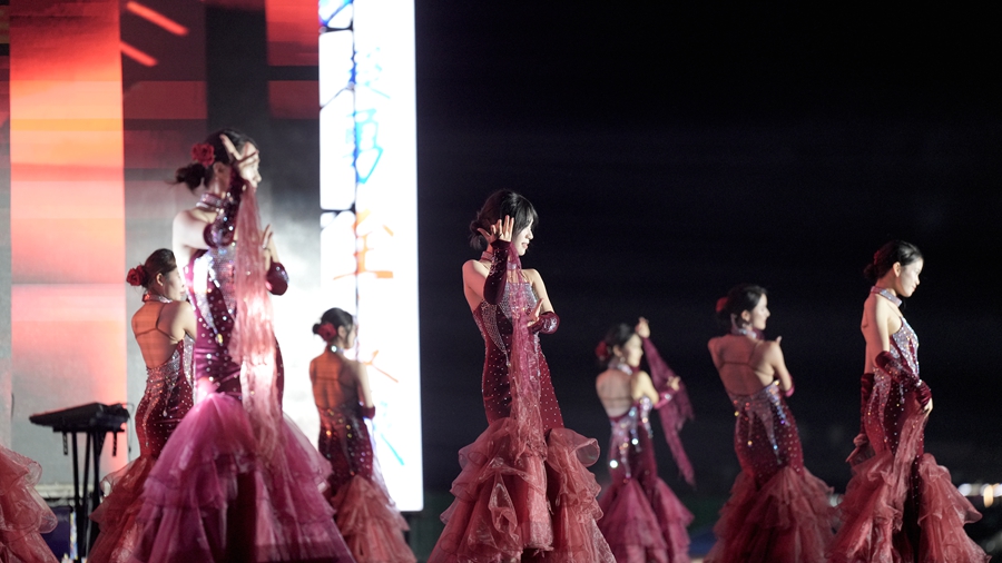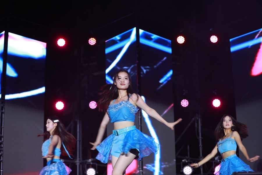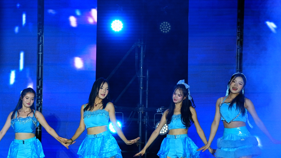 隨后,多元表演輪番登場,歌聲與舞姿交織成最動人的夏夜樂章。劍河籍歌手劉寒風(fēng)帶著對家鄉(xiāng)的深情,唱響《我等你在劍河》,熟悉的鄉(xiāng)音與旋律勾起在場鄉(xiāng)親的鄉(xiāng)愁,也讓外地游客對劍河多了份向往;彩虹計劃樂隊帶來《離開地球表面》《戀愛ING》等歌曲,明快的節(jié)奏讓觀眾忍不住起身跳躍,全場化身大型合唱現(xiàn)場;舞蹈《摩登女郎》則以靈動的舞姿、時尚的編排,為音樂舞臺注入別樣活力,舞者們的默契配合引得臺下掌聲不斷。最后,歌手張賢赫壓軸登場,先以一首《抖音舞》點燃全場互動熱情,魔性旋律搭配動感舞步帶動觀眾齊搖擺,緊接著切換風(fēng)格演繹《來自星星的你》,溫柔聲線直擊人心,將整場演出推向高潮,臺下熒光棒與歡呼聲匯成一片海洋。