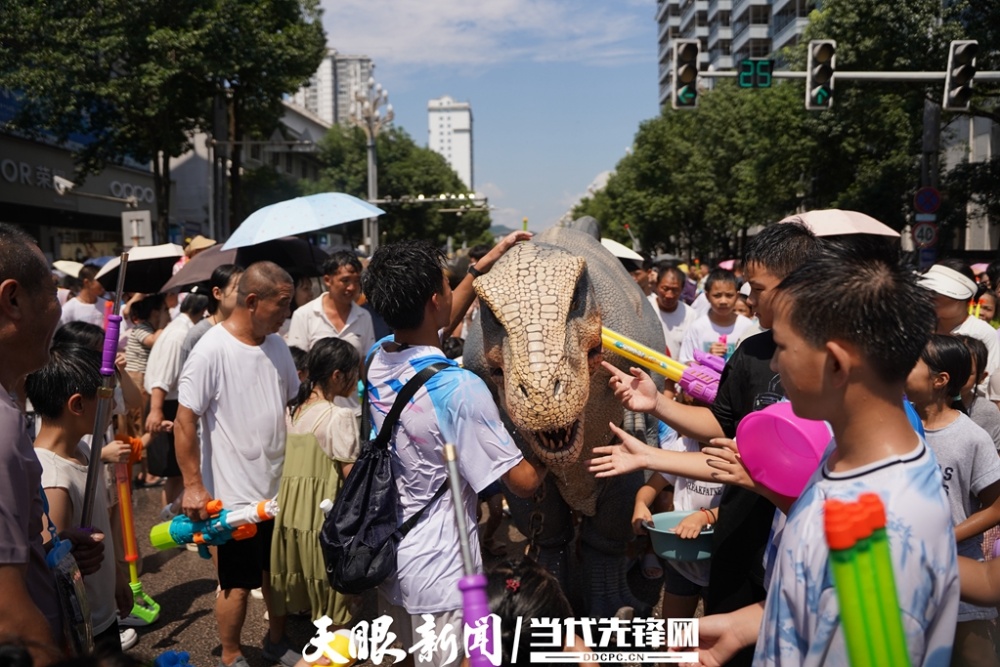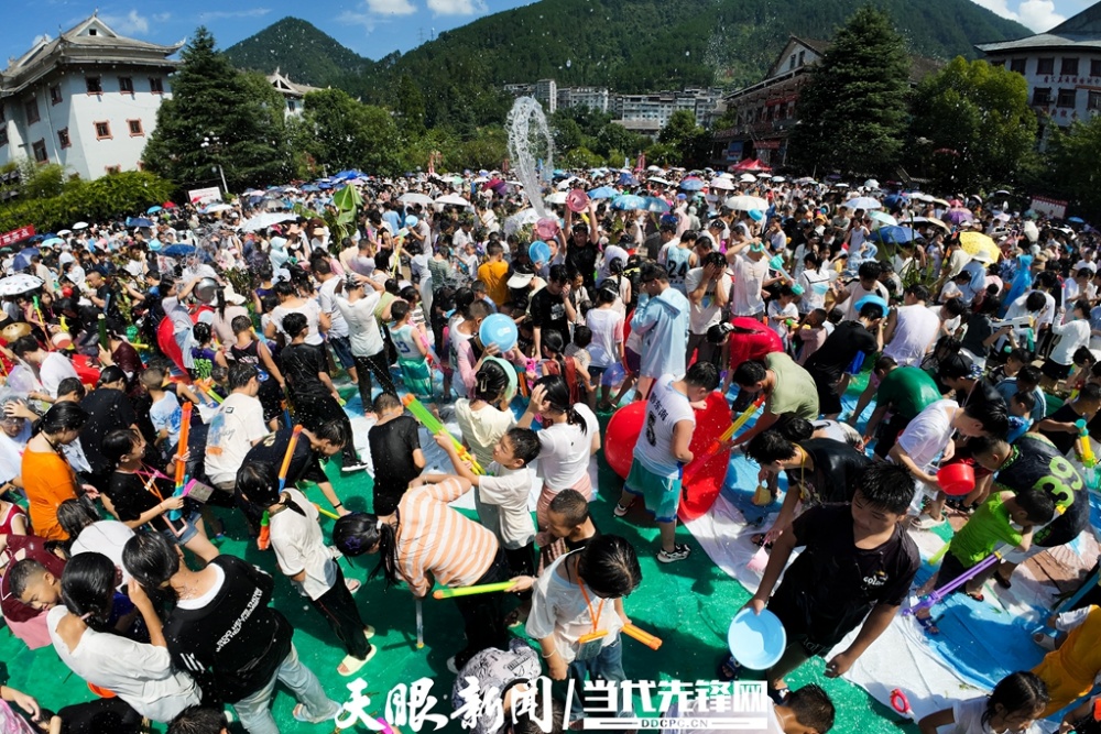 7月30日,劍河縣2025年“六月六”仰阿莎文化節(jié)首場(chǎng)水龍狂歡及“蹦水迪”活動(dòng)在劍河縣城舉行,上萬(wàn)游客及當(dāng)?shù)厝罕妬?lái)到現(xiàn)場(chǎng)參與,整個(gè)劍河縣城被歡快氛圍所籠罩。