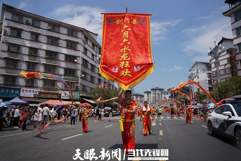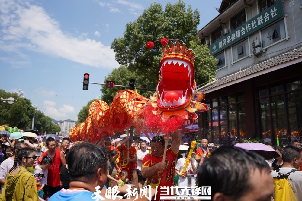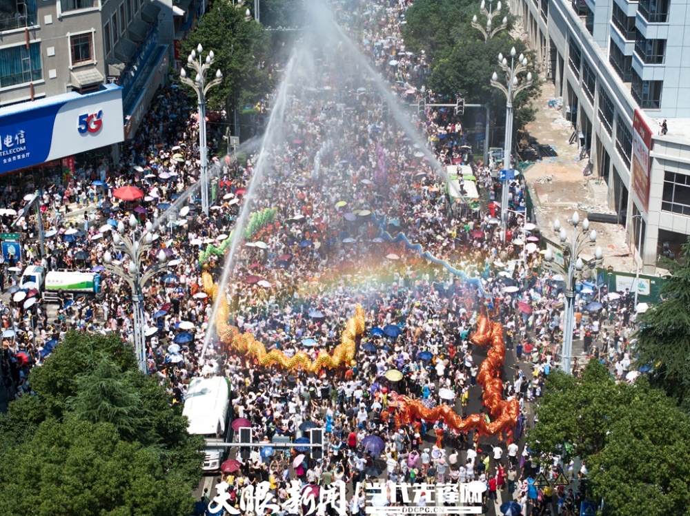 據(jù)了解,舞水龍?jiān)从诋?dāng)?shù)毓艜r(shí)的求雨祭祀,每逢旱時(shí),人們便以此來(lái)祈求天降霖露。龍過(guò)之處,水潑得越多,越是象征著風(fēng)調(diào)雨順、五谷豐登、吉祥如意。