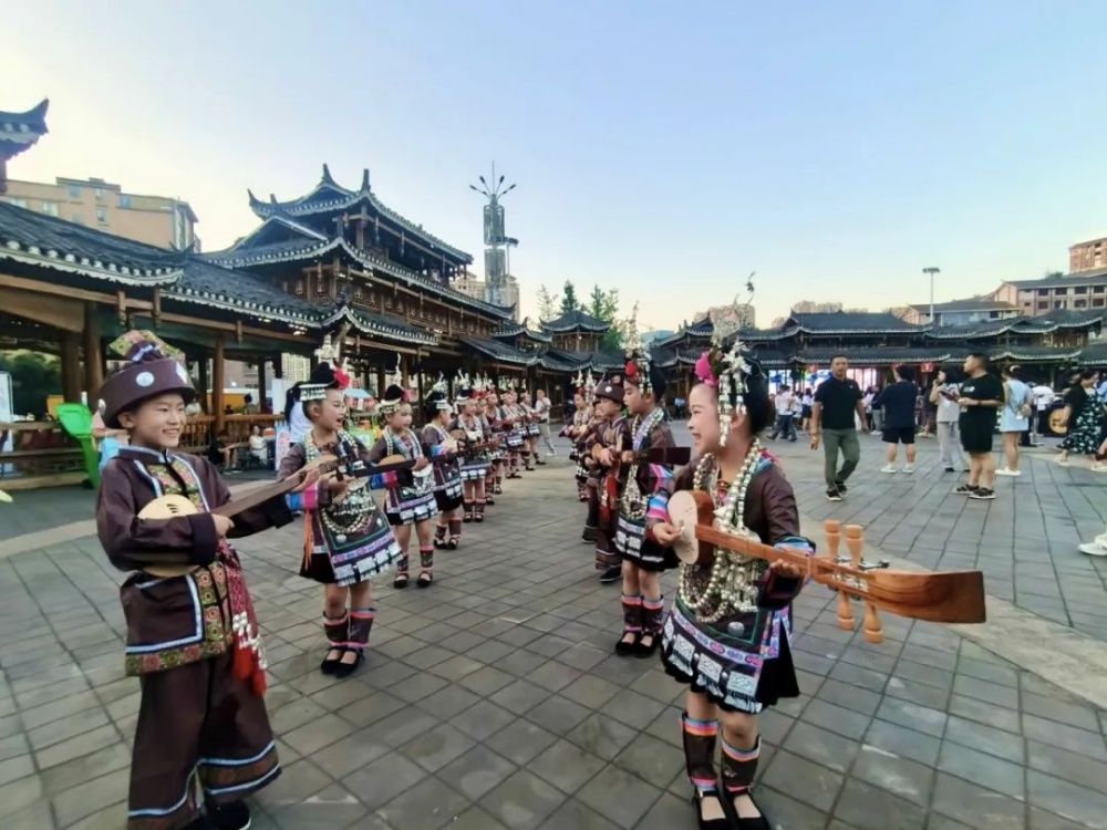 活動中,凱里市開懷街道棉席村與凱里市文化館聯(lián)袂獻(xiàn)上“高排蘆笙演奏+踩橋舞”,悠揚(yáng)的蘆笙聲與歡快的舞步交織,瞬間點(diǎn)燃現(xiàn)場氛圍。緊隨其后,灣水鎮(zhèn)村民呈現(xiàn)的《千年巖寨歡迎您》T臺情景秀與民族服飾秀,巧妙結(jié)合傳統(tǒng)村寨故事與現(xiàn)代T臺走秀,贏得觀眾陣陣掌聲。凱里市文化館的《盛世銀裝》舞蹈以銀飾為主題,演繹了苗族文化的華美風(fēng)采;凱里市青少年活動中心的童聲侗歌合唱《你說侗家樂不樂》,則用純凈童聲傳遞侗族人民的樂觀精神。