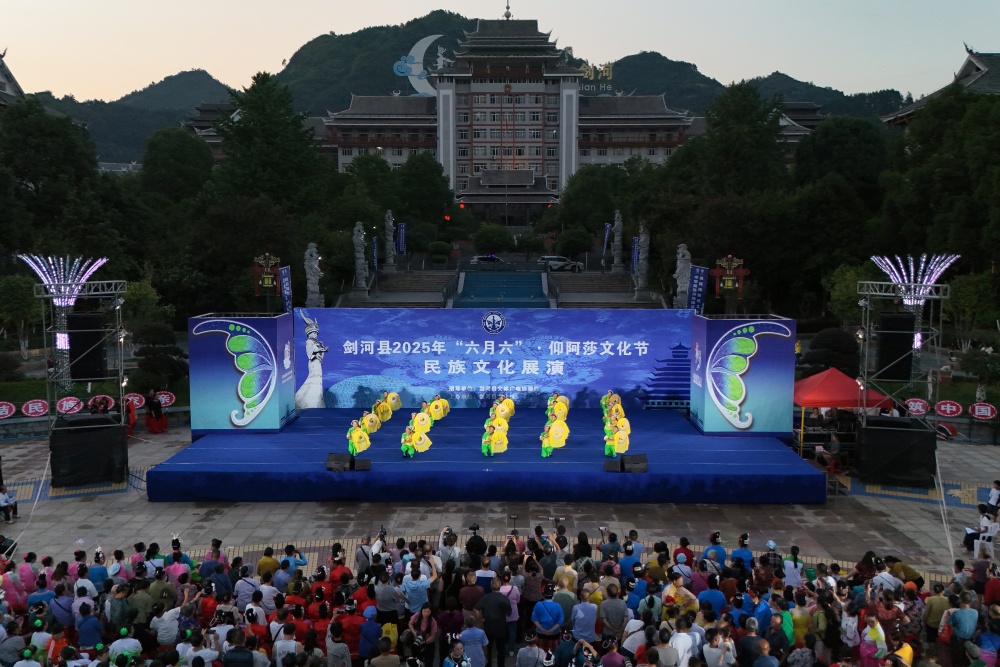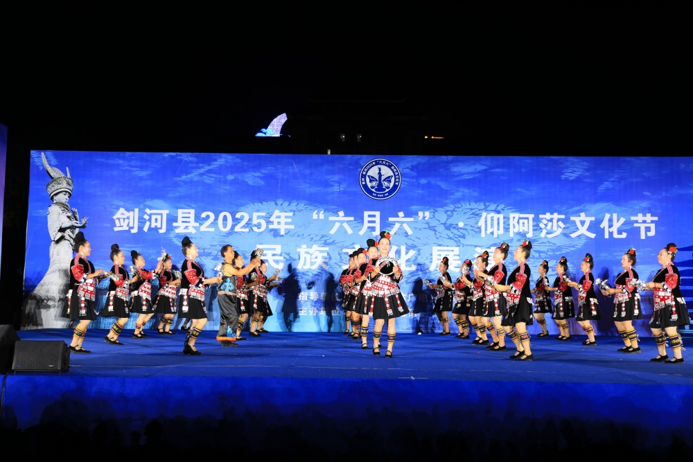 8月2日晚,劍河縣2025年“六月六”?仰阿莎文化節(jié)民族文化展演活動(dòng),在縣陽光廣場上演?;顒?dòng)集中呈現(xiàn)了苗、侗民族特色文化及人民群眾生活蒸蒸日上之景,一場精彩紛呈的民族文化盛宴,吸引了眾多游客和市民觀看。