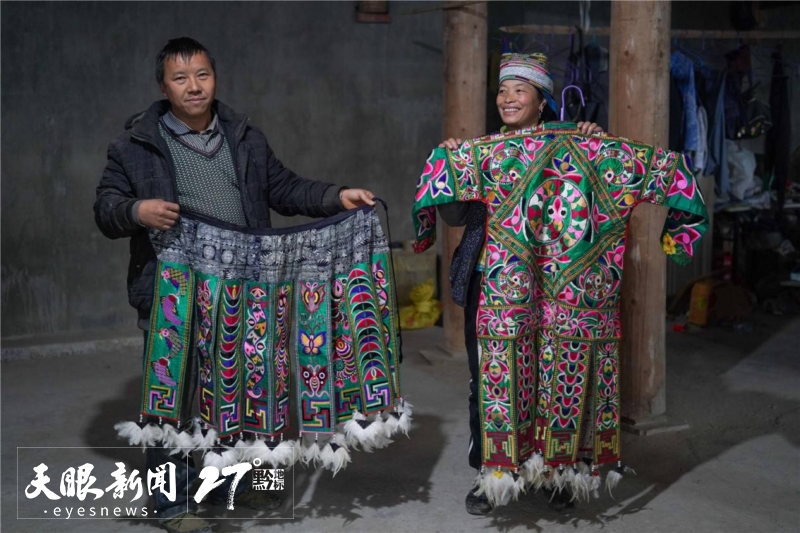 吃新節(jié)也是擺貝苗寨重要的節(jié)日之一。在這個節(jié)日的儀式里,寨老是至關(guān)重要的。地方志記載,寨老身著一整套獨特的行頭,肩挎大馬刀,腰系小刀,威風(fēng)凜凜。在寨老的帶領(lǐng)下,寨民們身著盛裝,吹起蘆笙,跳起歡快的舞蹈。百鳥衣在此時也格外耀眼,人們用這樣的方式慶祝莊稼即將成熟,感恩大自然的饋贈。