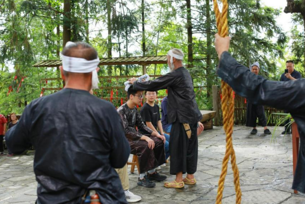 寨老會在現(xiàn)場為游客解讀儀式的每一個細(xì)節(jié):從老者口中吟誦的古老祝詞,到少年紋絲不動的堅毅神情;從鐮刀的特殊形制到發(fā)髻與“出生栽樹,離世用樹為棺?!钡纳軐W(xué)關(guān)聯(lián),滿足游客的文化探索需求。