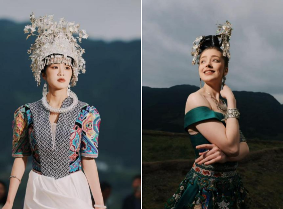 “村T”大秀登場,民族符號碰撞時尚鋒芒。16時,“村T” 大秀將在岜沙T臺拉開帷幕。與常規(guī)秀場不同,這里的“模特” 是平日里插秧割稻的村民——苗家漢子肩扛火槍走上舞臺,白布頭巾上的青色花紋在燈光下流轉(zhuǎn);苗家姑娘身著百褶裙款款而來,裙擺上的銅鼓紋刺繡隨步伐起伏,仿佛在解鎖古老的圖騰密碼。讓“時尚”回歸最本真的模樣,堅守自身民族文化的自信。