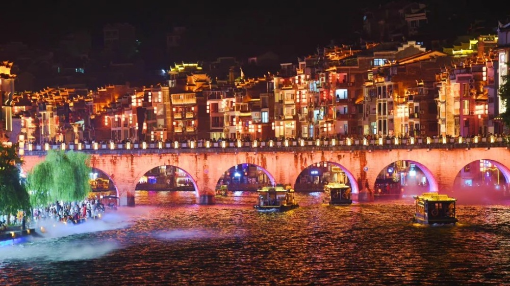 演出開場時,沿河便圍滿觀眾。演員們利用現(xiàn)代聲光電技術(shù),憑借嫻熟的演技,聲情并茂地展現(xiàn)了古城悠久的歷史底蘊(yùn)和獨(dú)特風(fēng)韻,引來觀眾的陣陣掌聲。游客們一致稱贊:“想不到還能看到這么精彩的演出,真是太高興了!”