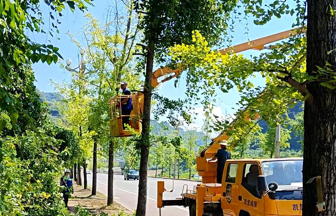 據(jù)悉,6月以來,凱里市園林綠化管理處共計修剪綠化帶81900㎡,修剪草皮281150㎡,修剪綠化球150個,修剪喬木50棵,修剪造型樹60棵;共清運斷枝枯枝165車,清理倒樹死株31棵,清理隱患樹12棵,完成全城綠化帶澆水240車次,綠化帶補栽苗木500株,種植苗木5000株,種植花卉30000株,農(nóng)藥防治156090㎡。