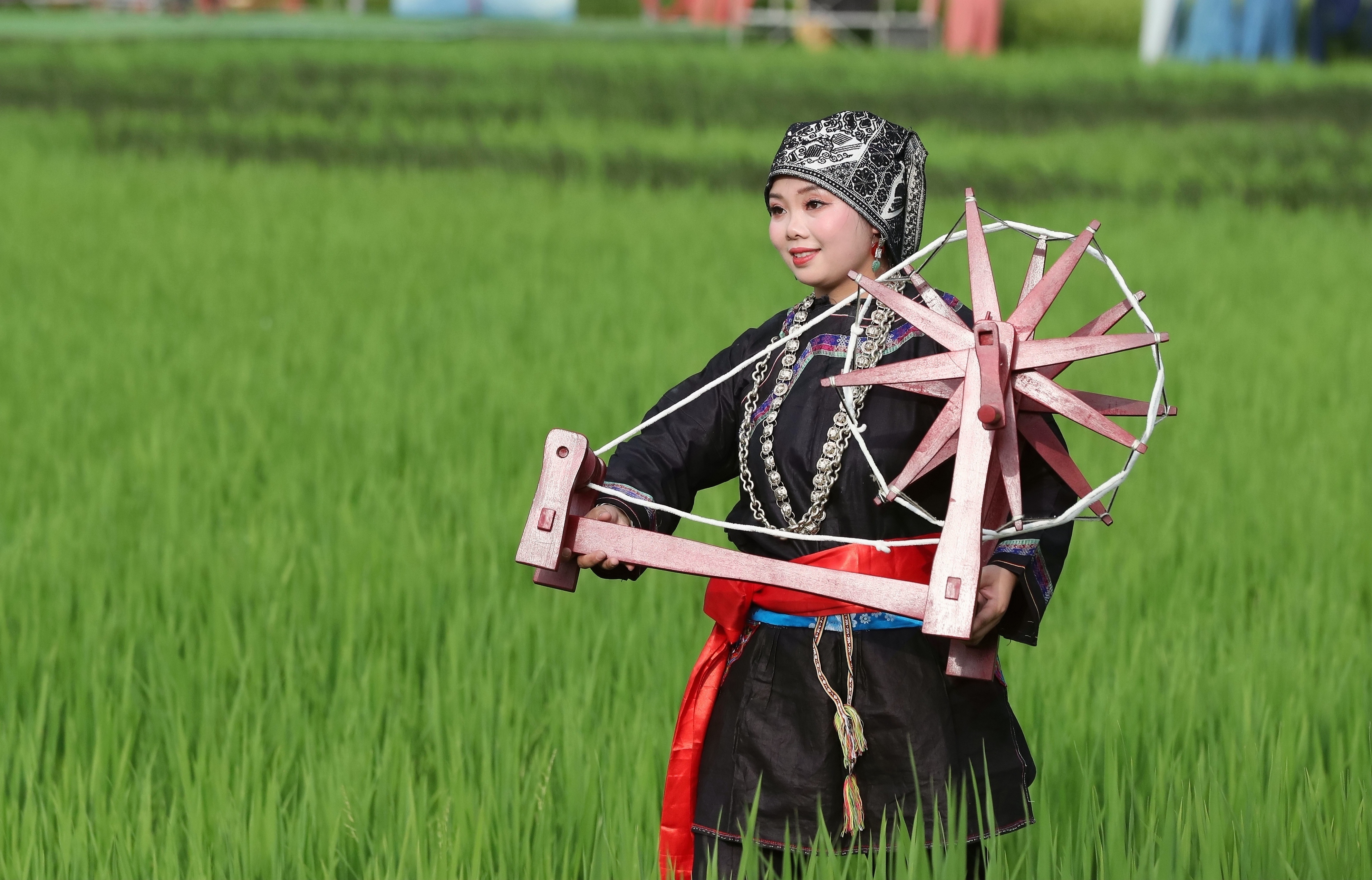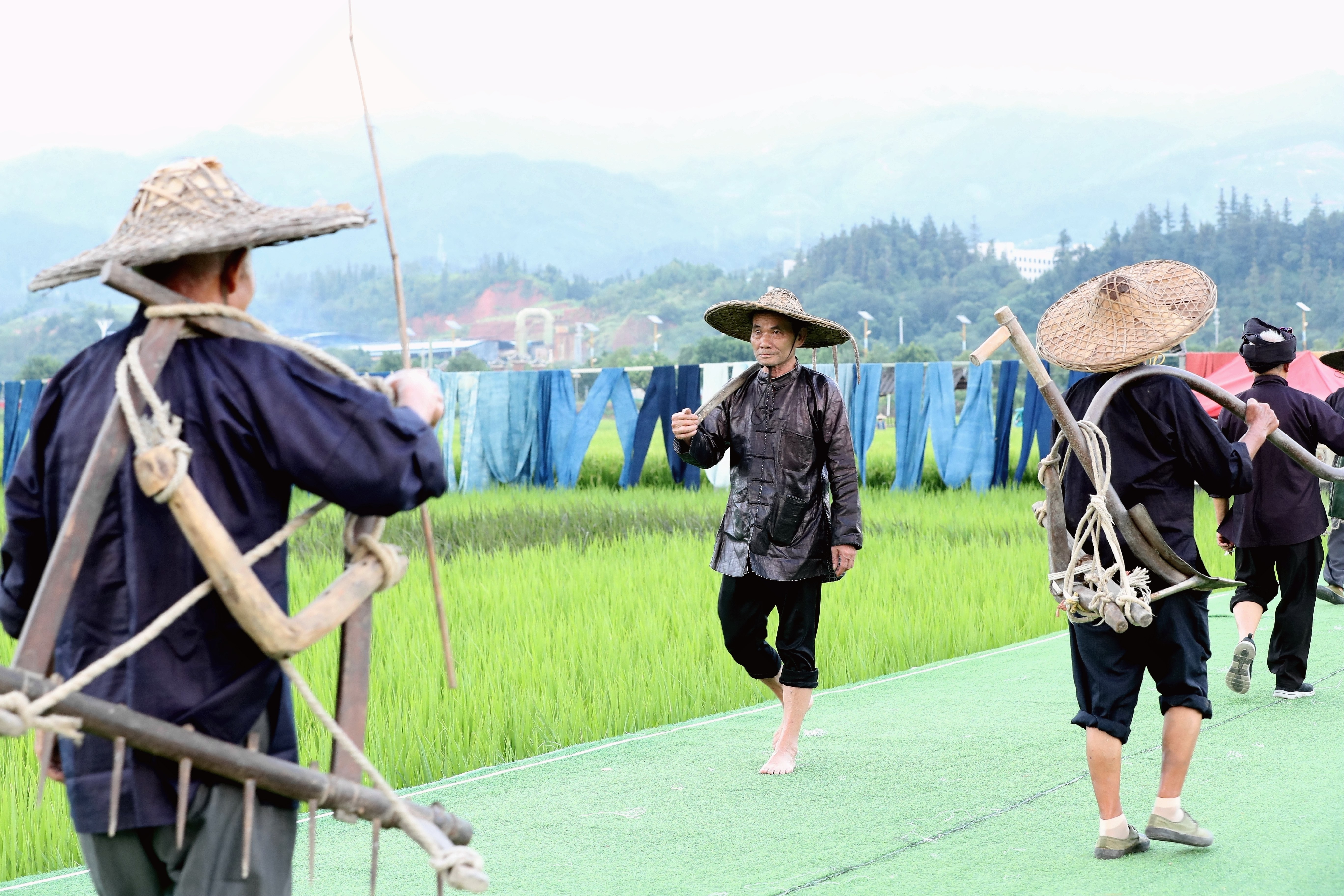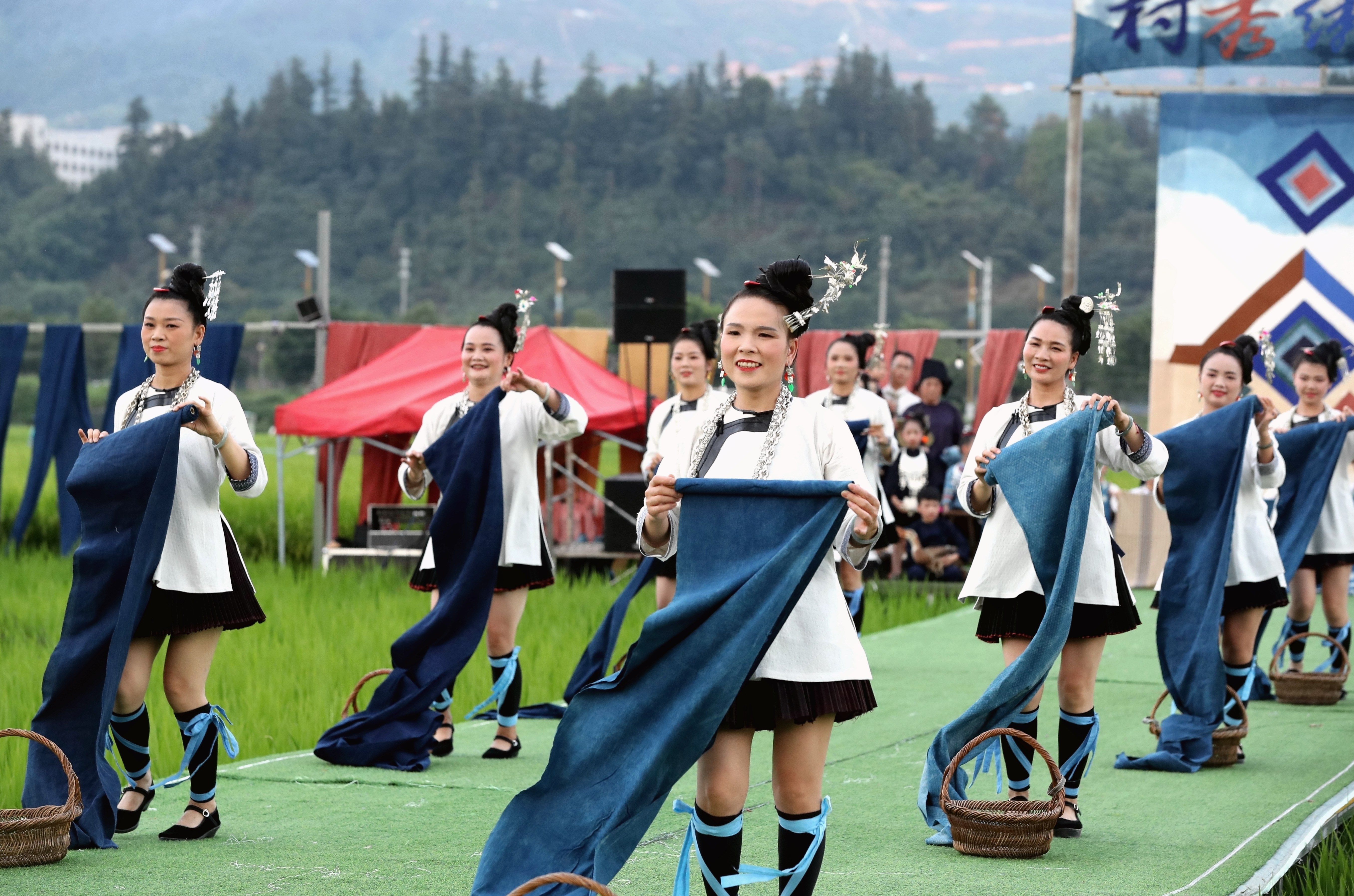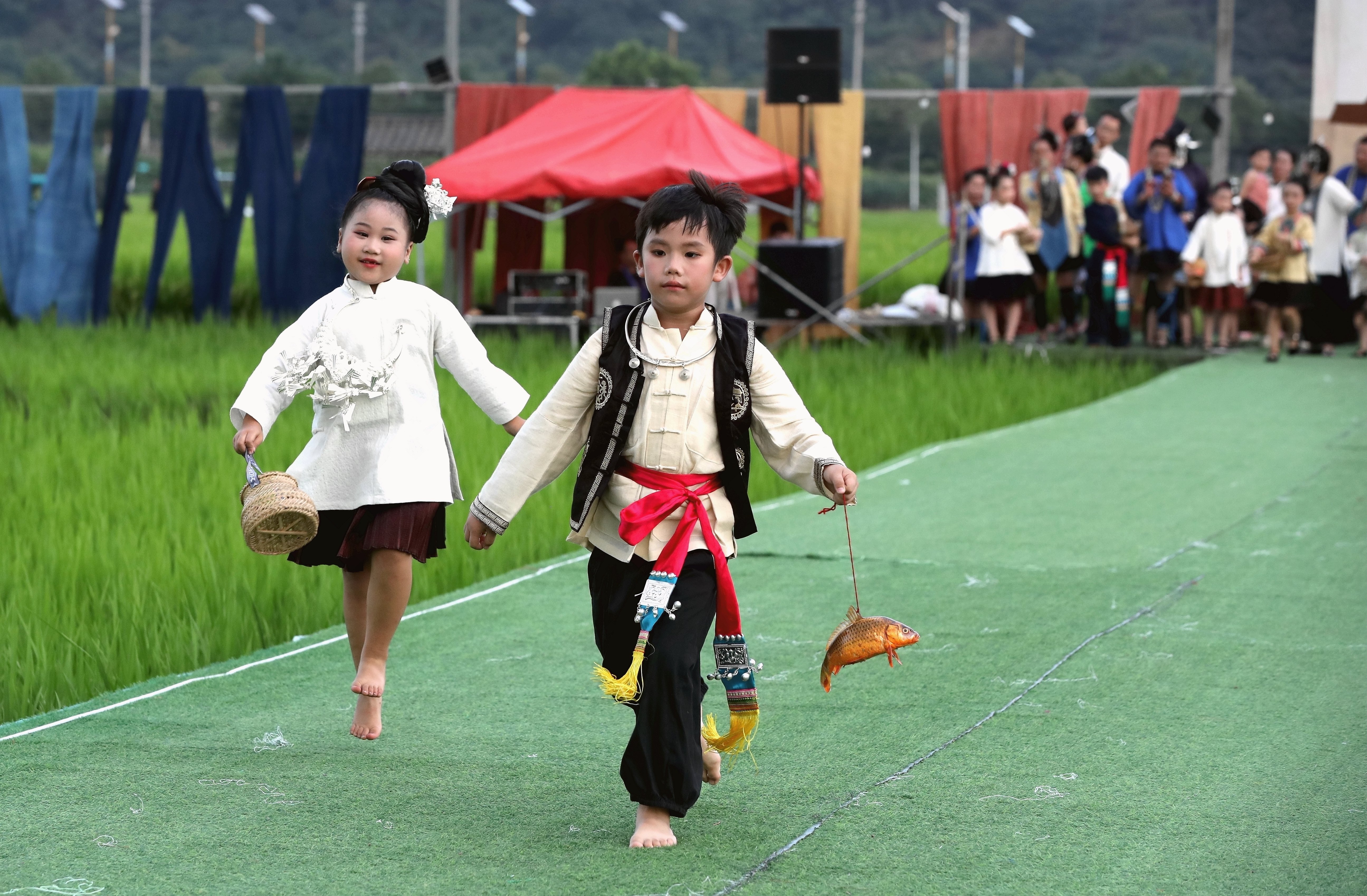 當(dāng)日,貴州省黔東南苗族侗族自治州榕江縣古州鎮(zhèn)在車江大壩田園風(fēng)光舉辦“村秀?繡未來”主題活動,當(dāng)?shù)卮迕裆碇⒀b參加“村秀?繡未來”走秀,展示她們刺繡工藝、紡織技藝、藍(lán)染制作、建筑工匠等絢麗多彩的民族文化?!按逍恪被顒邮且浴拔幕x能鄉(xiāng)村?傳統(tǒng)煥新時(shí)尚”為核心理念,旨在深度融合榕江侗族文化遺產(chǎn)與鄉(xiāng)村旅游融合發(fā)展政策,借助貴州“村超”賽事帶來的流量效應(yīng),打造集“非遺文化+生態(tài)展示+產(chǎn)業(yè)轉(zhuǎn)化”于一體的鄉(xiāng)村旅游標(biāo)桿。舉辦極具特色的活動,吸引眾多游客前來感受獨(dú)特的民族風(fēng)情,多姿多彩的民族服飾向游客展示榕江少數(shù)民族文化魅力。