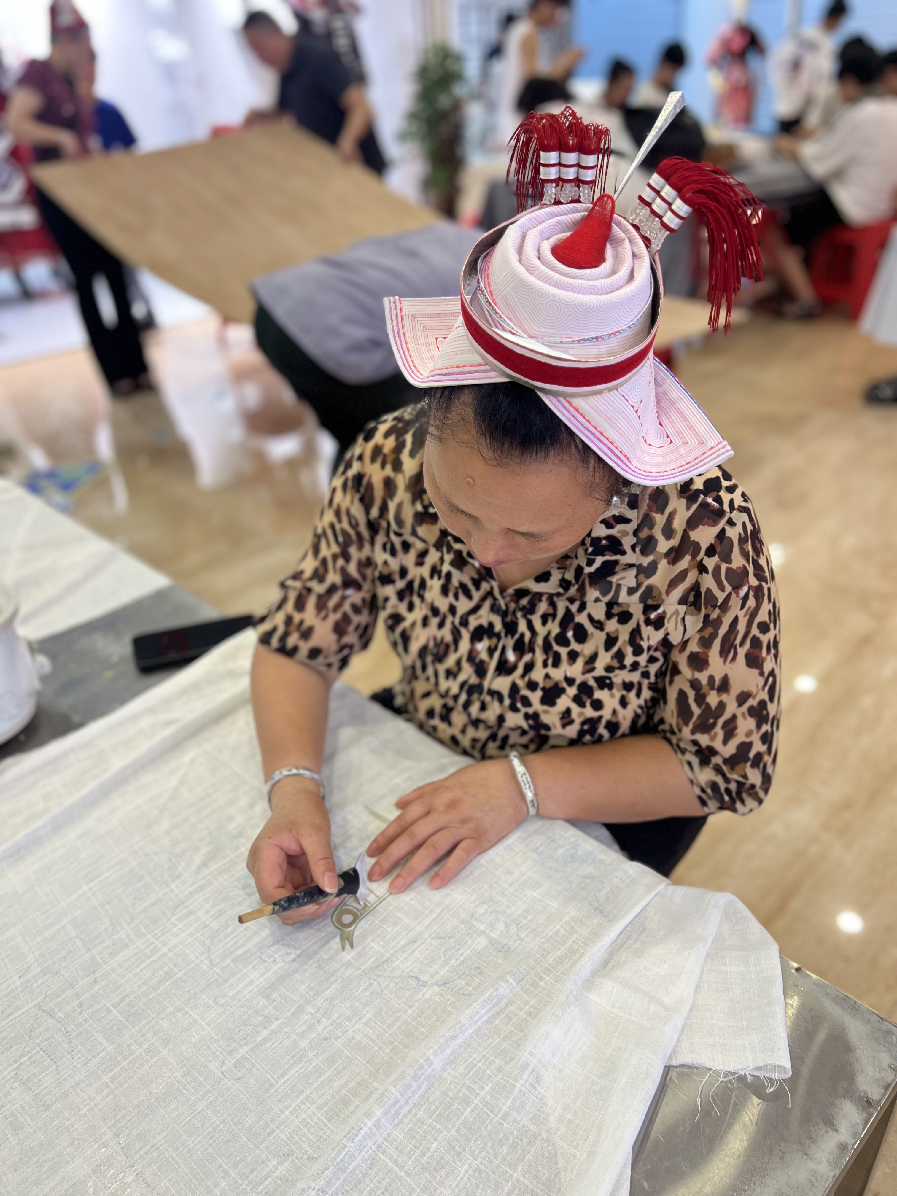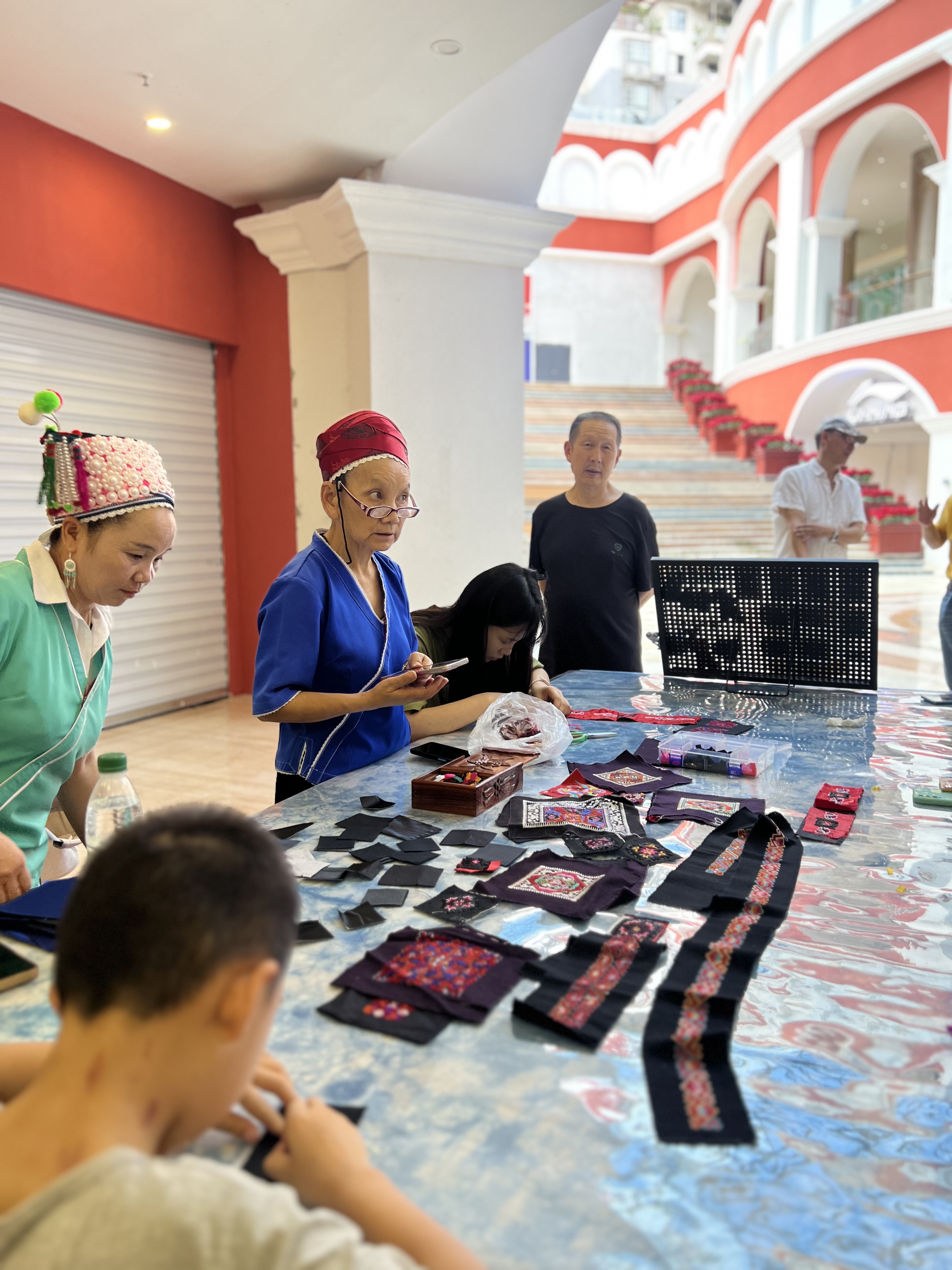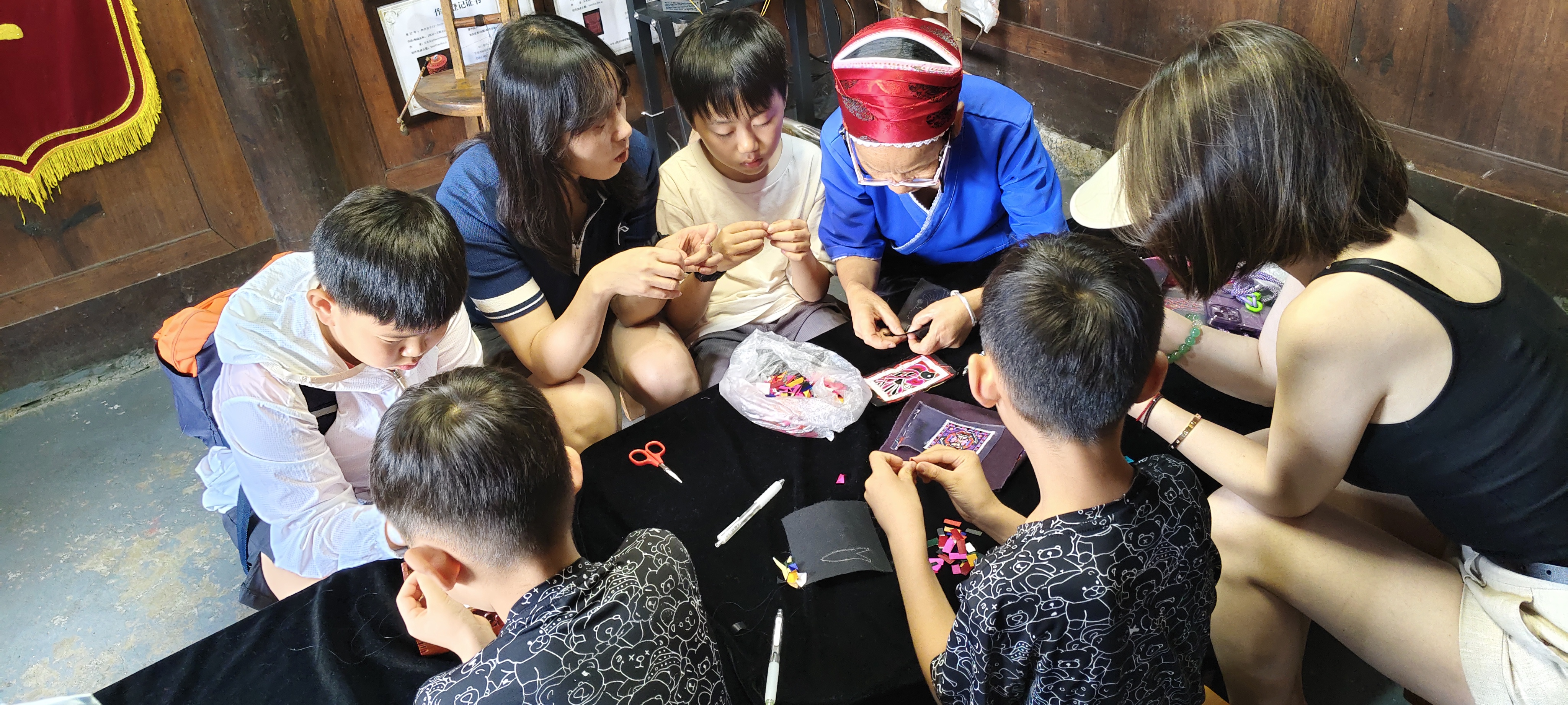 暑期期間,各個(gè)活動(dòng)現(xiàn)場(chǎng)人頭攢動(dòng)、氣氛熱烈。在傳承人的悉心指導(dǎo)下,中小學(xué)生和游客們紛紛挽起袖子,興致勃勃地近距離觸摸黔東南非遺的獨(dú)特肌理。他們親手拿起工具,嘗試銀飾鍛造、苗繡刺繡、蠟染繪制等傳統(tǒng)技藝。從最初面對(duì)工具和材料的生疏與好奇,到逐漸熟練地完成一個(gè)個(gè)作品,每一個(gè)動(dòng)作都飽含著對(duì)非遺的熱愛與探索。這種親身體驗(yàn),讓大家的文化體驗(yàn)實(shí)現(xiàn)了從“觀看”到“參與”、從“了解”到“融入”的華麗轉(zhuǎn)變。在動(dòng)手實(shí)踐的過程中,大家深刻領(lǐng)悟到非遺的博大精深和匠人精神的難能可貴,對(duì)傳統(tǒng)文化的認(rèn)同感和自豪感油然而生。