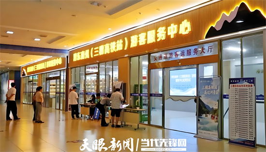 走進三穗高鐵站游客服務中心,右側(cè)電子屏實時滾動直通車班次,掃碼可預約包車;大廳展柜里陳列著黔東南特色旅游商品和農(nóng)特產(chǎn)品;充電休息區(qū)配有免費茶飲,行李可直寄酒店。“這里不僅是換乘站,更像一個旅游服務‘會客廳’,讓我們還沒到景區(qū)就能感受到黔東南的文化魅力?!眮碜院系挠慰托は壬硎?。