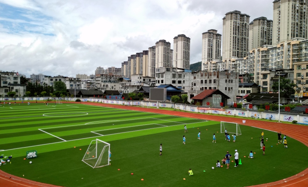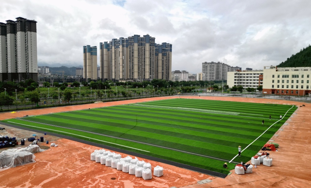 災(zāi)后,為盡快對受損的校園足球場恢復(fù)重建,江蘇威騰體育在免費(fèi)為貴州“村超”足球場恢復(fù)重建的同時(shí),又優(yōu)費(fèi)對榕江縣古州鎮(zhèn)富民小區(qū)幼兒園、古州鎮(zhèn)車民小學(xué)、古州鎮(zhèn)第一小學(xué)、榕江縣第一中學(xué)等10所校園足球場進(jìn)行恢復(fù)重建,為迎接開學(xué)恢復(fù)校園足球創(chuàng)造優(yōu)良運(yùn)動(dòng)場。