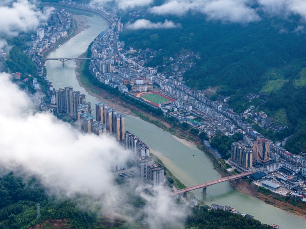 8月19日,拍攝的貴州省從江縣城景色(無人機照片)。