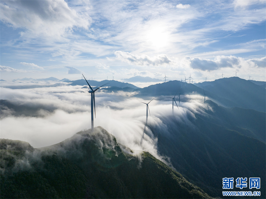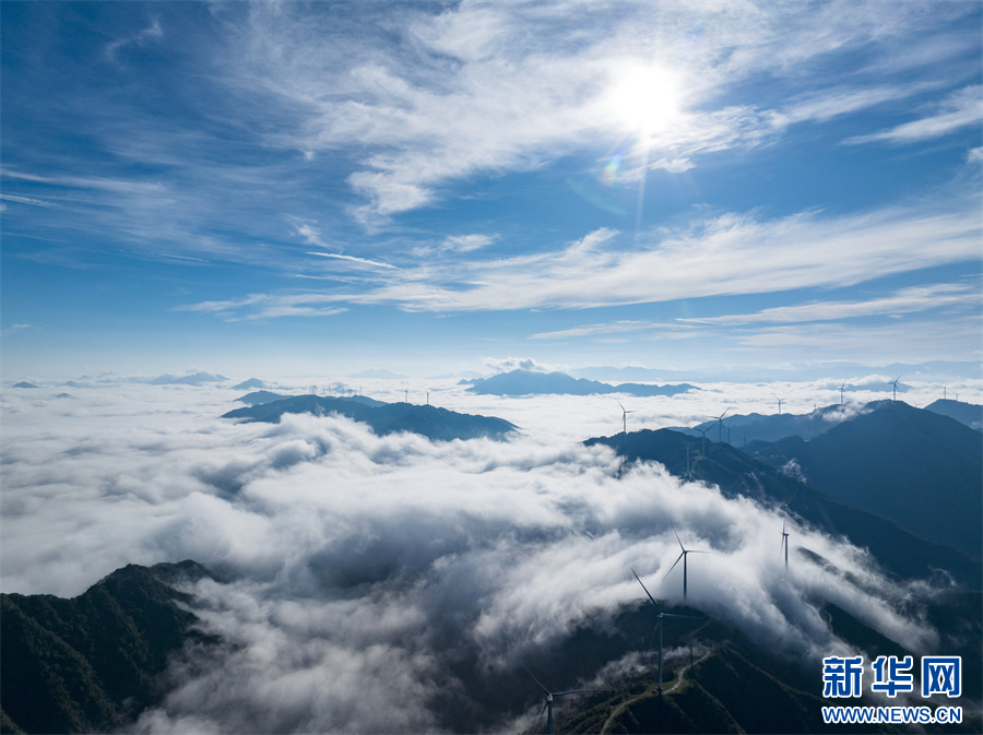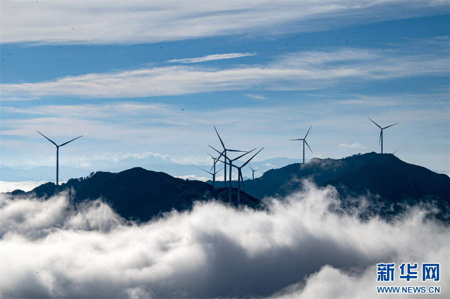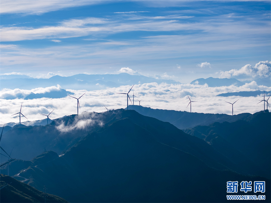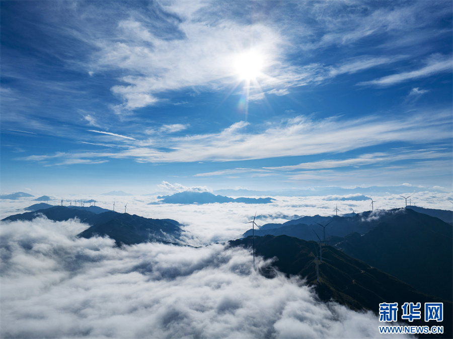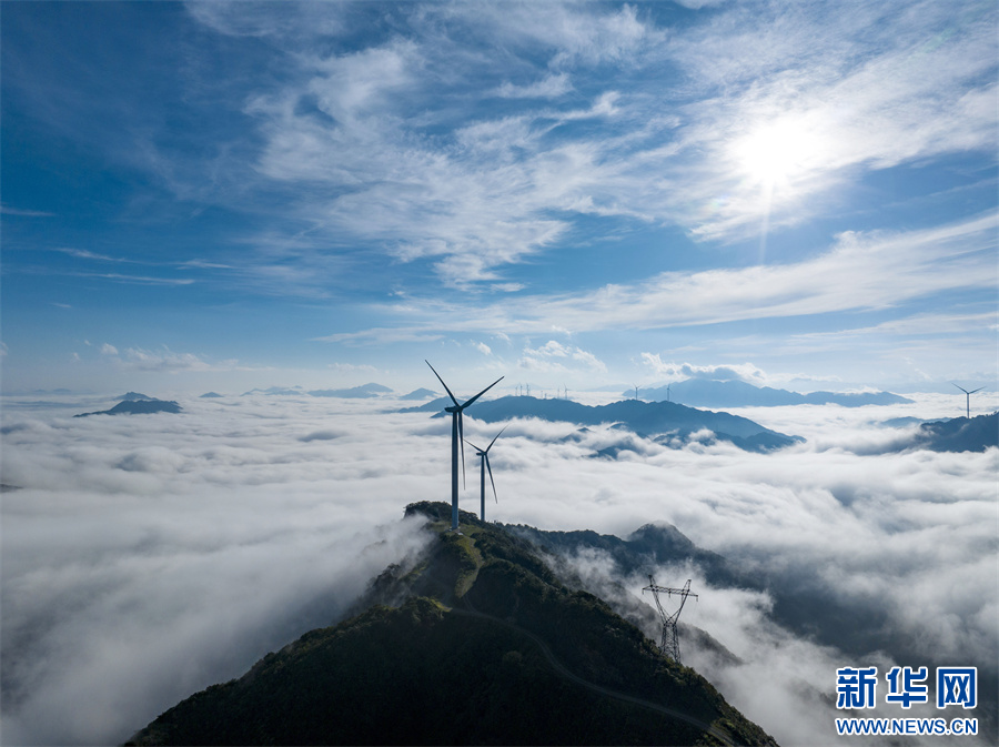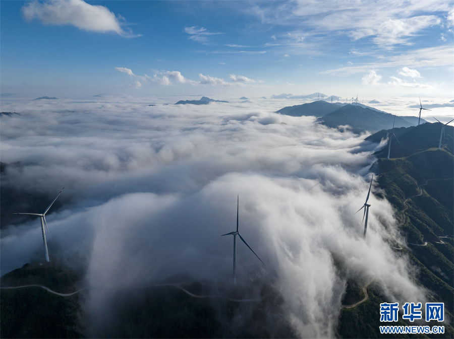 ?當(dāng)日清晨,貴州省黔東南苗族侗族自治州從江縣加榜鄉(xiāng)達(dá)棒山風(fēng)電場出現(xiàn)壯美云海景觀。一座座白色風(fēng)機(jī)矗立在連綿的山脊上,巨大的葉片劃破云海悠然旋轉(zhuǎn),與遠(yuǎn)山、藍(lán)天共同構(gòu)成一幅生態(tài)與科技交融的美麗畫卷。