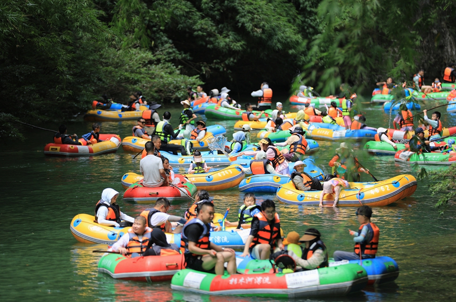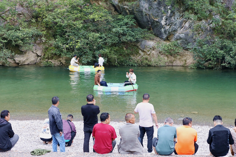 杉木河漂流在激發(fā)當?shù)芈糜谓?jīng)濟發(fā)展活力的同時,該縣還在漂流期間設(shè)立觀光車司機、護航員、安全員等臨工崗位。通過采取“技能測試+崗前培訓+應急演練+入職聘用”的方式,吸收當?shù)卮迕袢肼毦蜆I(yè)收入,帶動農(nóng)戶到景區(qū)內(nèi)開辦農(nóng)家樂、山莊、民宿、燒烤攤點等創(chuàng)業(yè)增收。