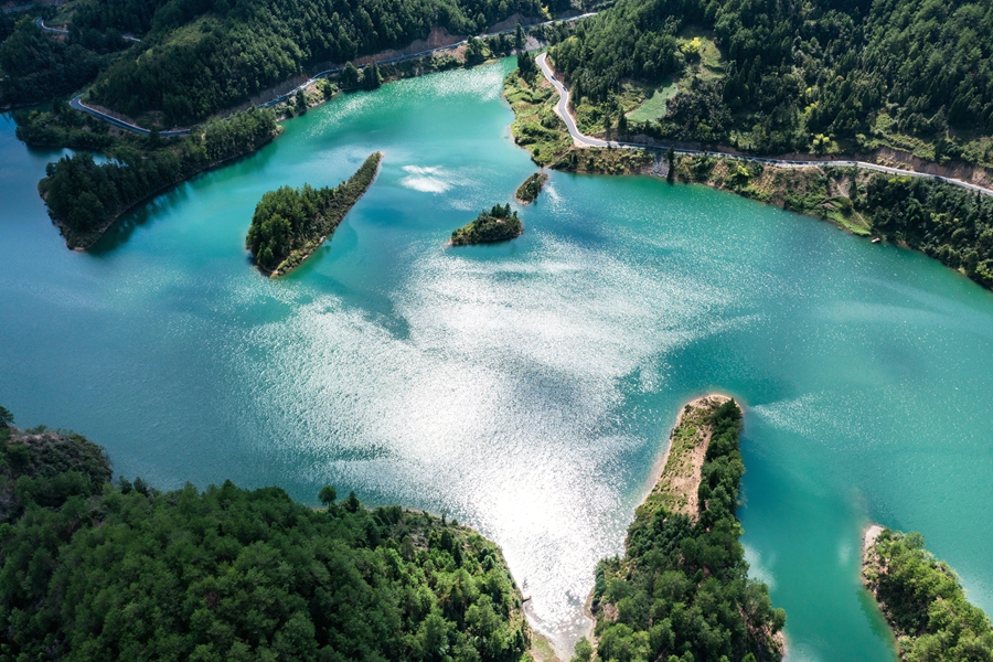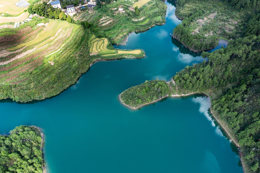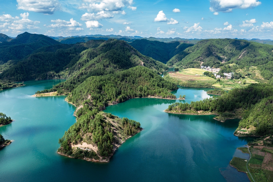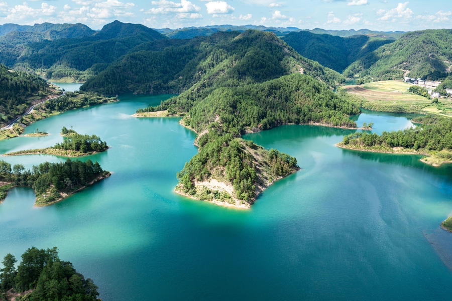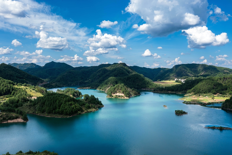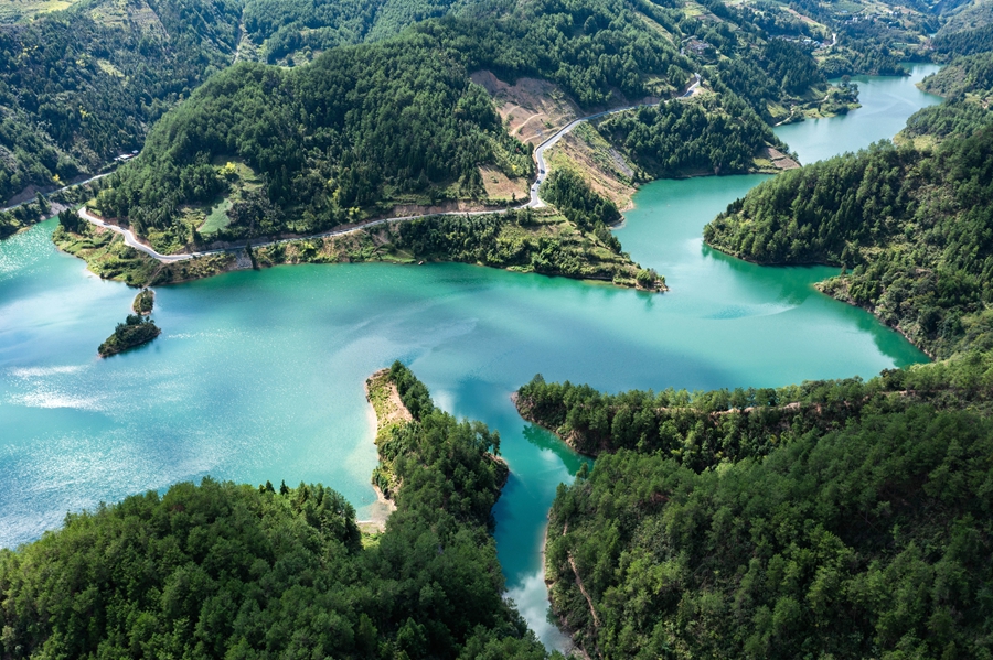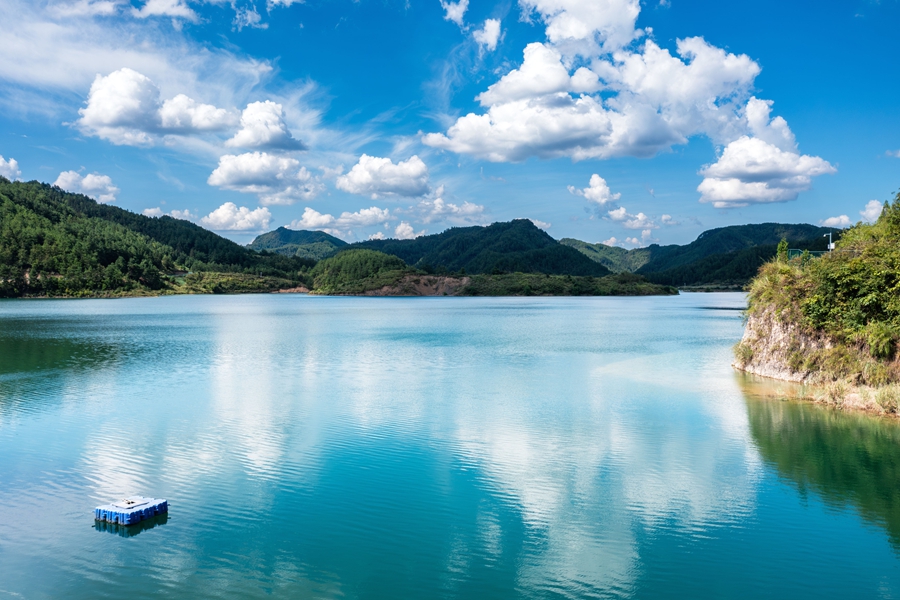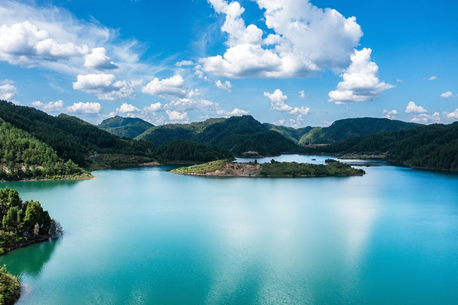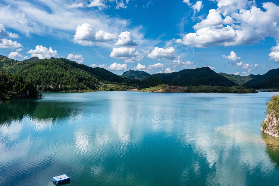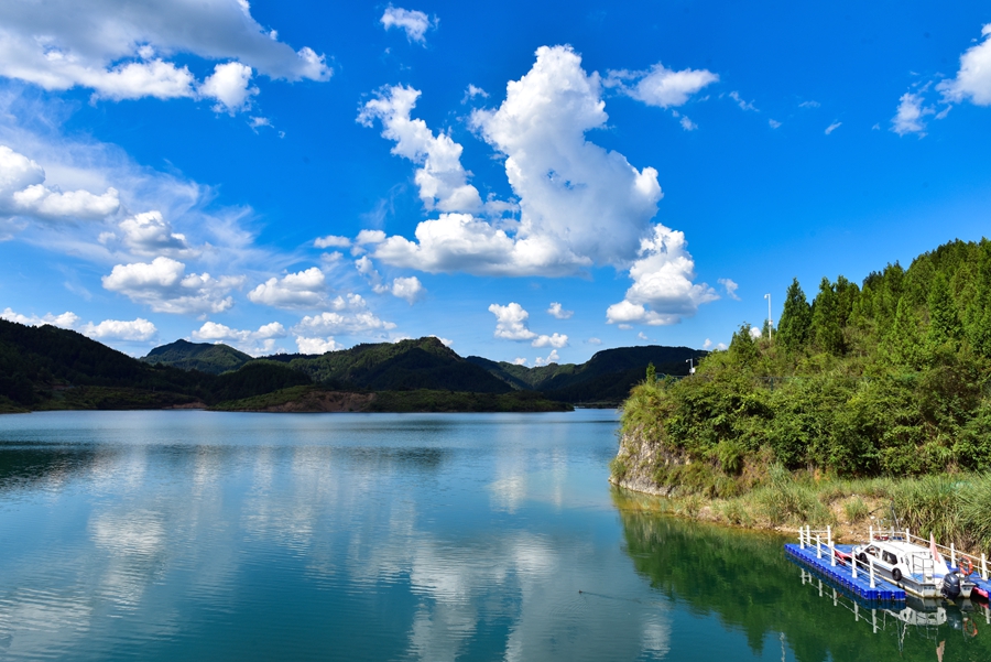 初秋時(shí)節(jié),位于貴州省黔東南苗族侗族自治州岑鞏縣大有鎮(zhèn)的下溪水庫(kù),碧波蕩漾,水天一色,風(fēng)光旖旎,宛如一塊鑲嵌在大山深處的綠色寶石。
