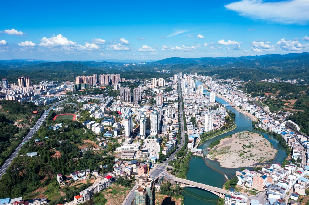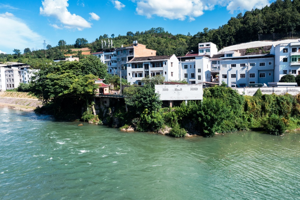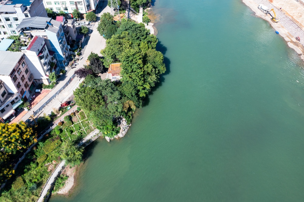 圖為:8月25日,在貴州省黔東南苗族侗族自治州岑鞏縣?水街道拍攝?陽河風(fēng)光。