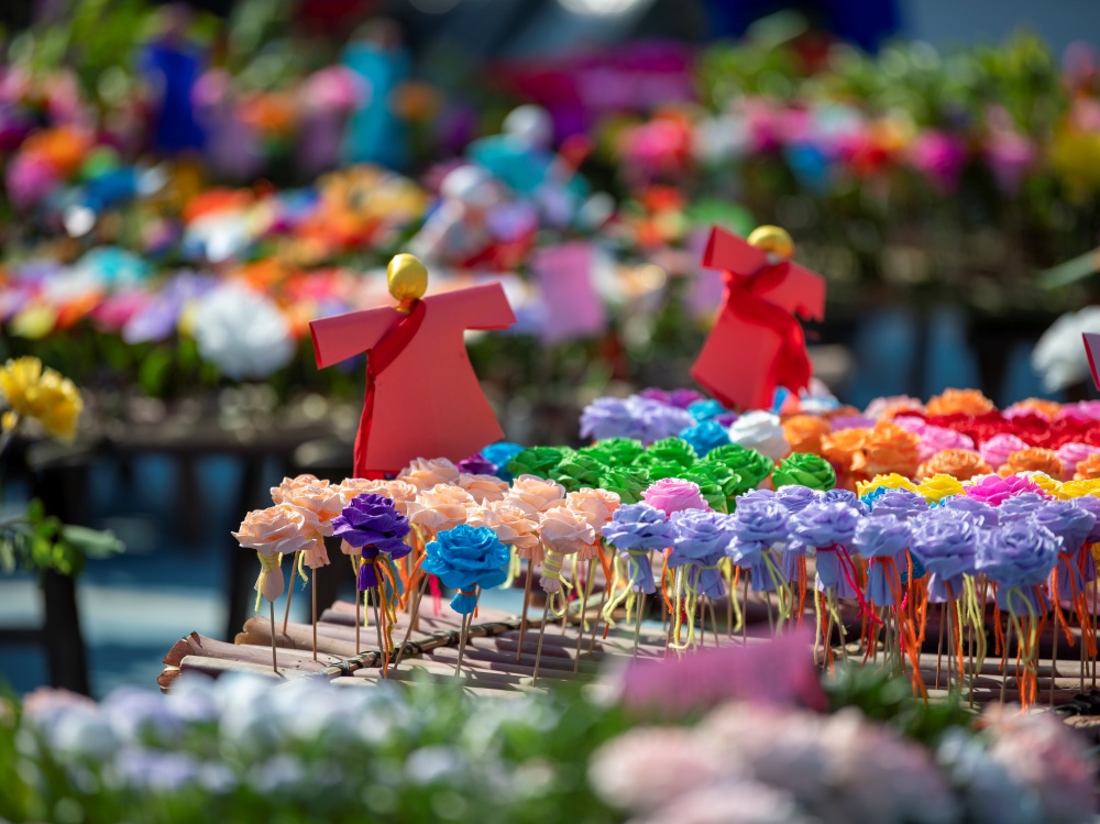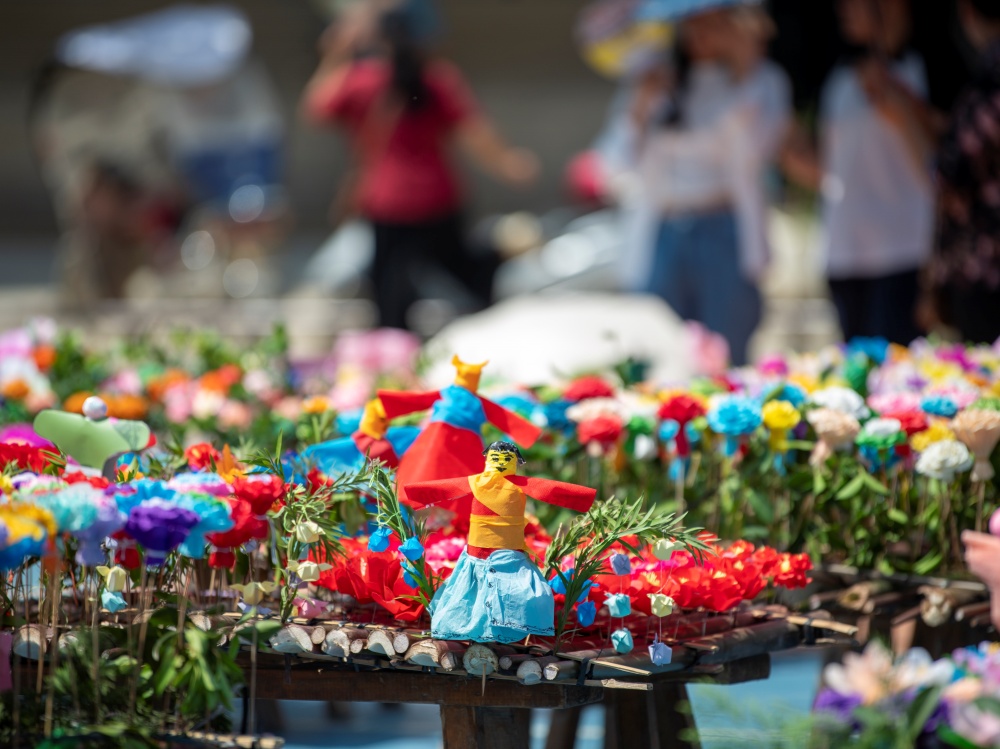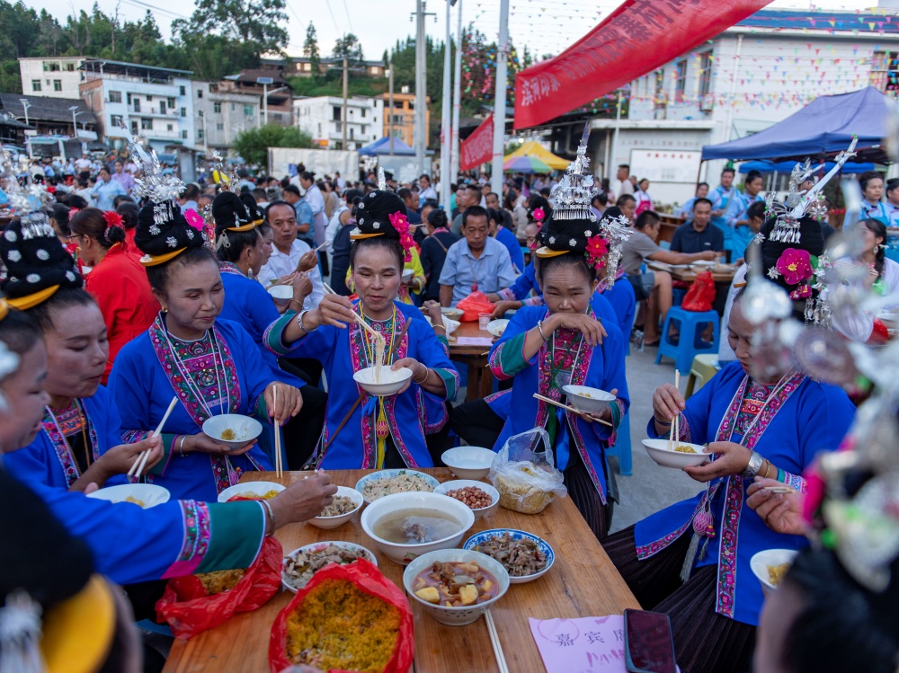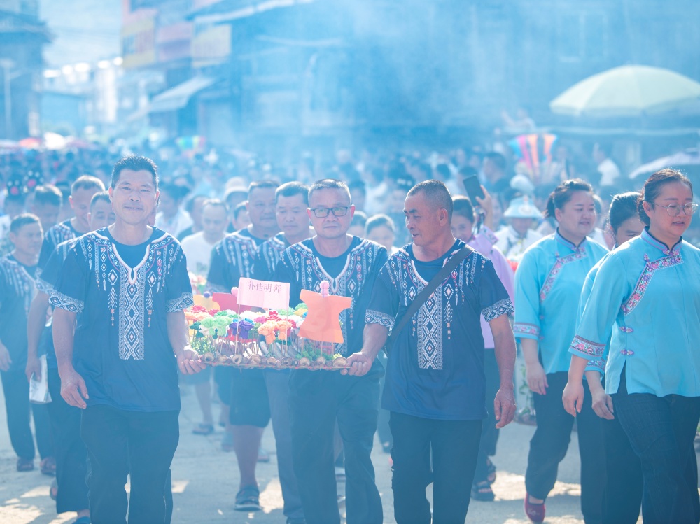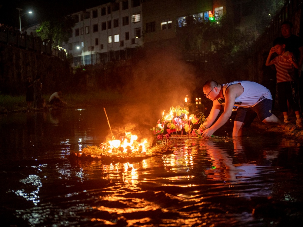 當日,貴州省黔東南苗族侗族自治州從江縣西山鎮(zhèn)坪寨村舉辦中元河旅游燈節(jié)。當?shù)囟弊逋c游客齊聚都柳江支流孖拉河畔,通過文藝展演、制作展示千姿百態(tài)的創(chuàng)意河燈、舉行盛大的河燈巡游、擺設凝聚鄉(xiāng)情的百桌家宴以及集體祈福放河燈等一系列豐富多彩的活動,共慶這一傳統(tǒng)節(jié)日,展現(xiàn)了當?shù)鬲毺氐拿褡逦幕攘εc鄉(xiāng)村振興的新氣象。
