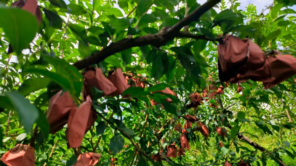 取下一枚黃金李,剝開外層的環(huán)保袋,金黃的外觀,一股淡淡的果香就飄入鼻腔,咬上一口,隨著果肉在牙齒間的擠壓,飽滿的汁水以清甜為主夾雜著輕微的果酸味,讓人味蕾滿足。