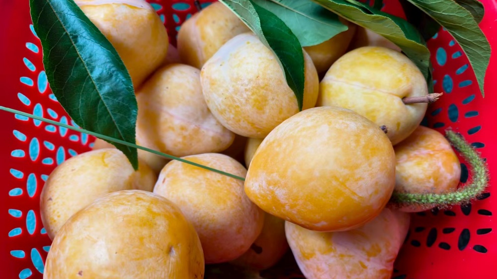 據(jù)了解,成熟的黃金李飽滿圓潤、色澤金黃、玲瓏剔透。其果內(nèi)腹空心,核肉分離,皮薄肉脆,味甜汁多,氣味芳香,且富含氨基酸、維生素C、鈣、鐵等多種元素,深受消費者喜愛。