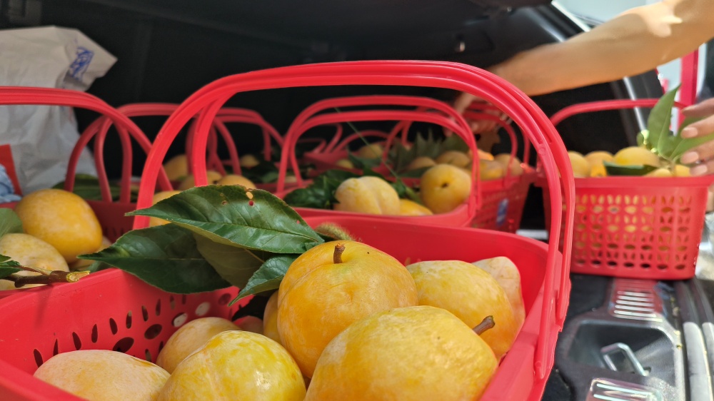 “個頭太大了,我第一次見到這么大的李子,我眼睛都瞪大了,實在太大了,金燦燦的,真的是黃金李。”前來采購的歐女士說道。