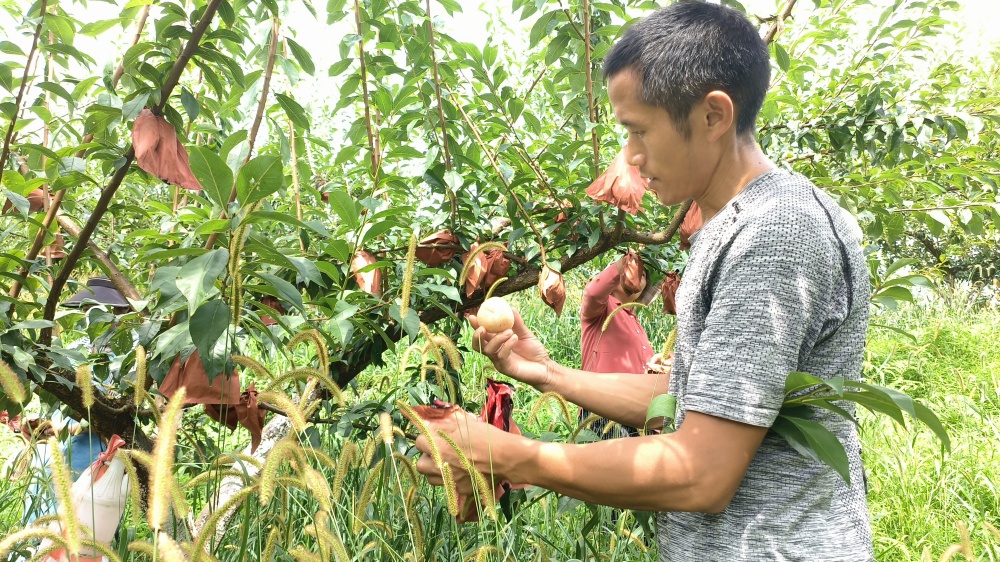 “我到處去學(xué)習(xí),尋找適合我們這里的產(chǎn)業(yè)。這個果園位于海拔900米的山上,為黃金李生長提供了良好環(huán)境。充足的光照與較大的晝夜溫差,使黃金李能積累更多糖分,口感甜美。”黎坤和向記者介紹。