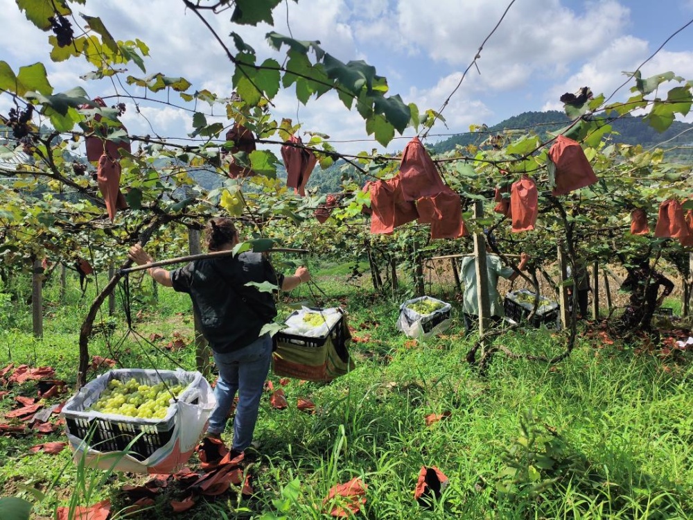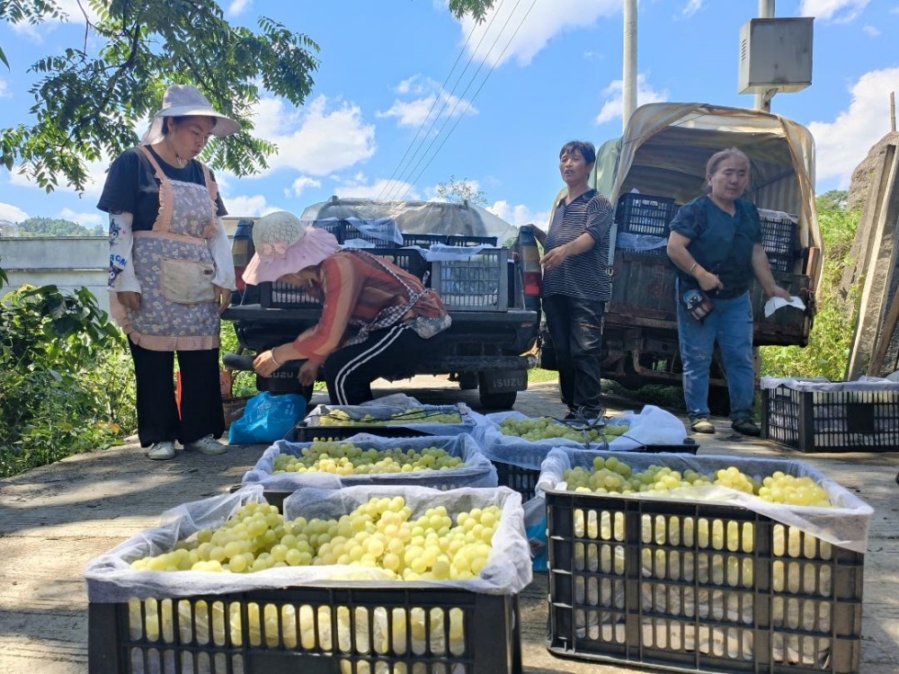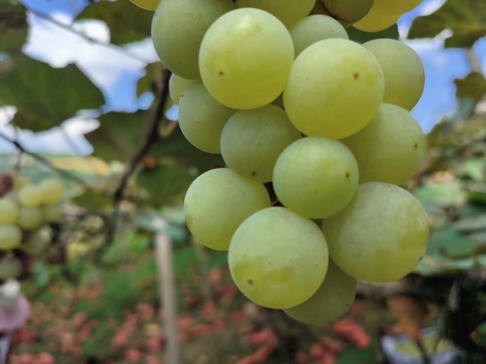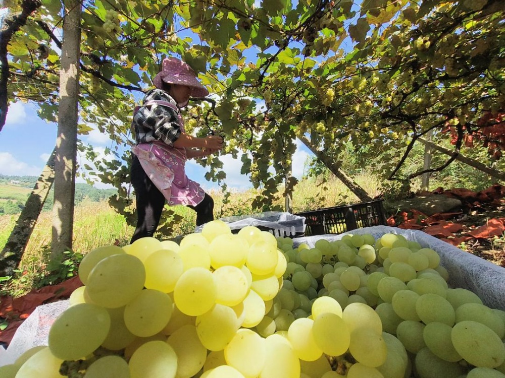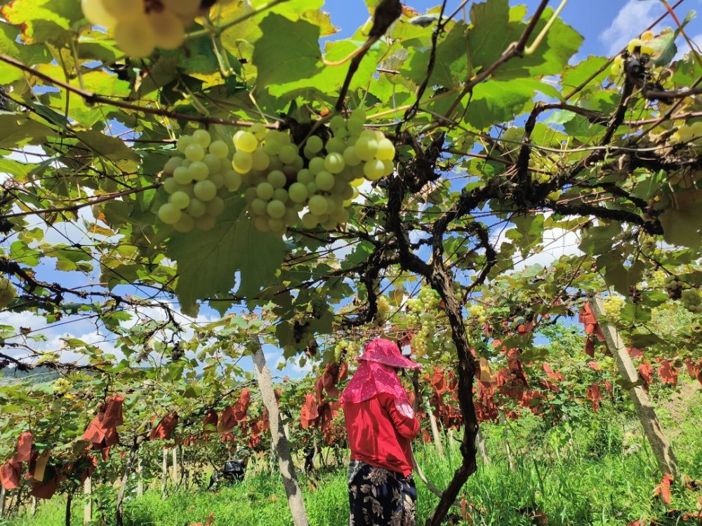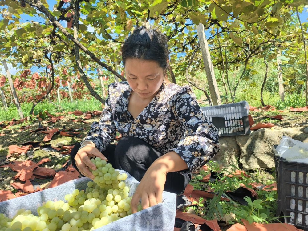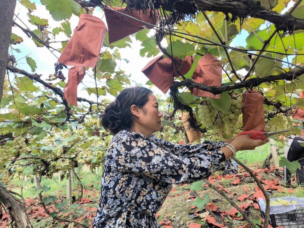 村支書潘秀琴介紹,杉樹林村種植葡萄很多年了,這里的葡萄獲得國家地理標(biāo)識,有很好的口碑。近年來,村里在不斷培育發(fā)展葡萄產(chǎn)業(yè),在項目、技術(shù)上給予果農(nóng)幫助,引進避雨栽培技術(shù)等,讓果農(nóng)葡萄種植收獲有保障,越來越多的農(nóng)戶返鄉(xiāng)發(fā)展葡萄種植。?