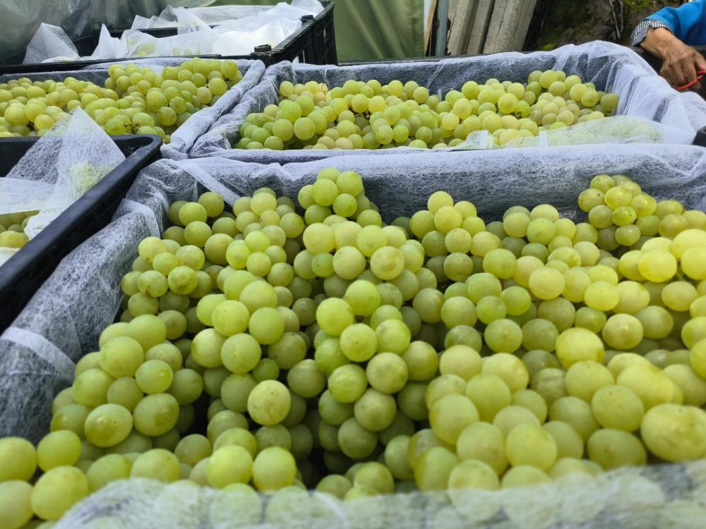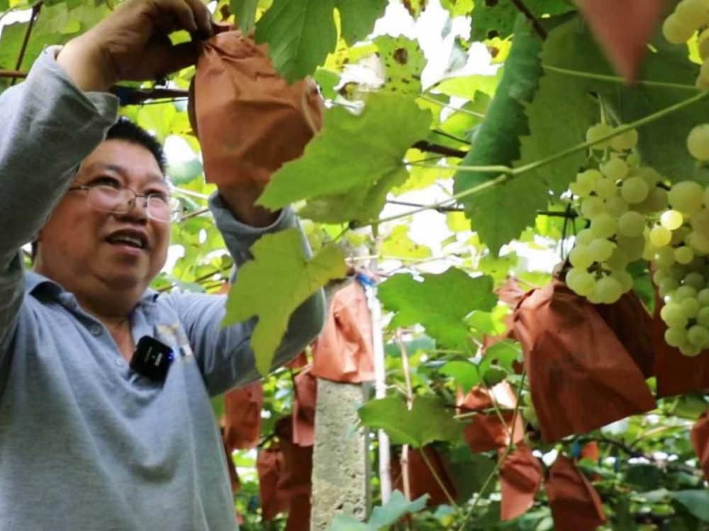 “我今年水果有60多畝,其中葡萄40多畝,今年有14個品種,今年引進了分段式避雨栽培技術(shù),葡萄品質(zhì)提升了很多,一畝三千斤是有的?!?