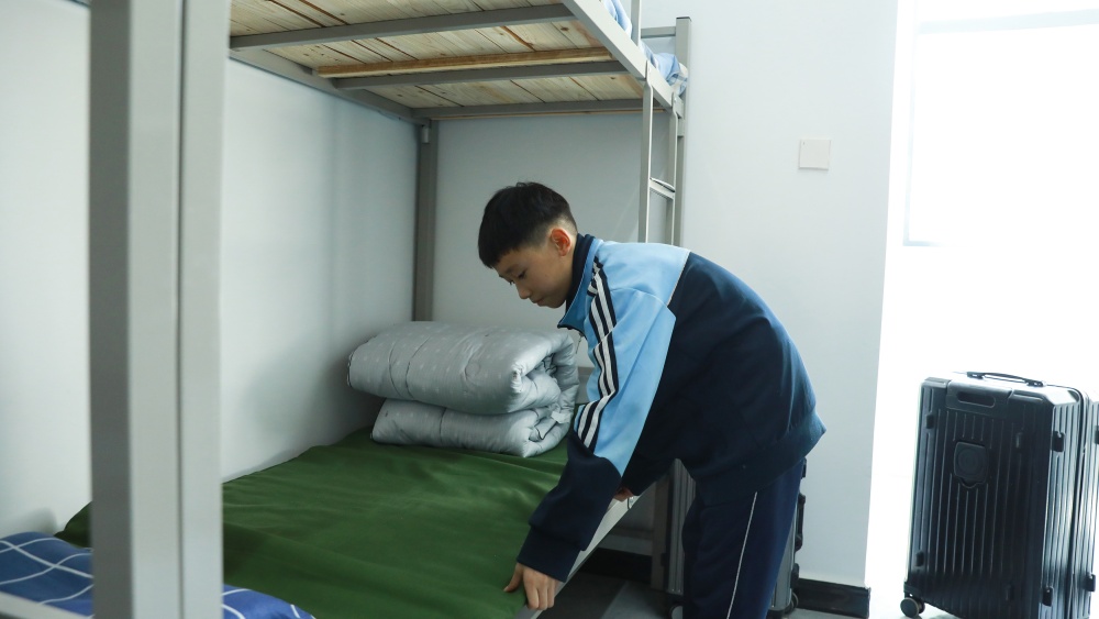 學(xué)生龍勝楊和同學(xué)們忙著整理床鋪、打掃宿舍衛(wèi)生,興奮的笑容始終掛在臉上?!敖裉煳覀冏∵M(jìn)了新宿舍,感覺新宿舍特別好,光線很明亮,住在學(xué)校也很方便,能有更多的時間和同學(xué)互相幫助、互相學(xué)習(xí),提高自己的學(xué)習(xí)成績?!饼垊贄钫f。