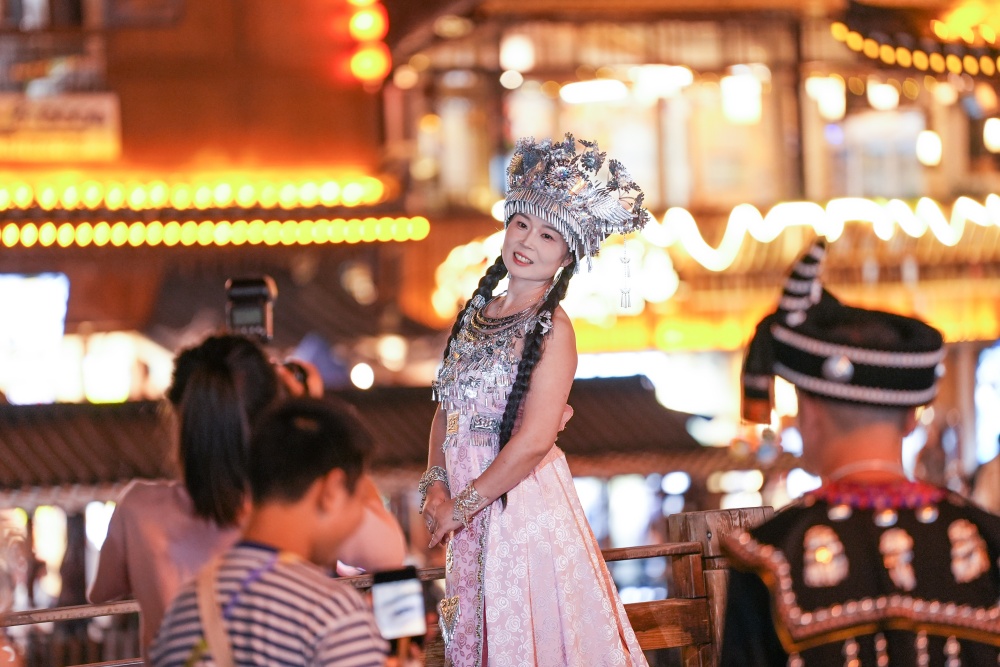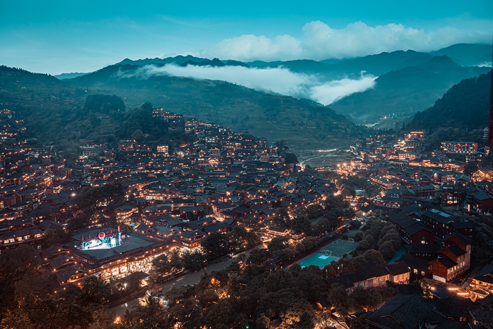 清晨,薄霧氤氳中的吊腳樓宛如仙境;入夜,華燈星星點(diǎn)點(diǎn),讓這個(gè)中國乃至全世界最大的苗族聚居村寨,燦爛成如黛群山中的盛景繁華。