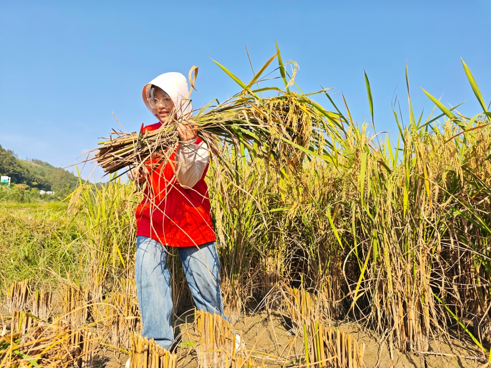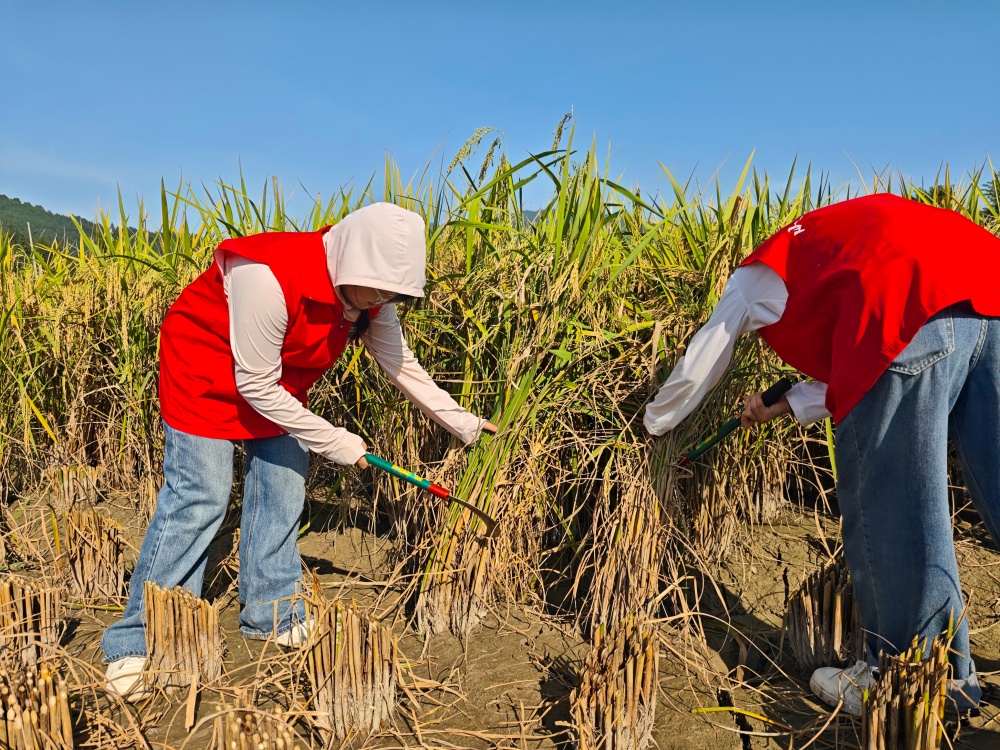 “這是我第一次體驗收割稻子,真正體會到農(nóng)事勞動的艱辛和糧食的來之不易,也更加理解了奉獻與互助的意義。”志愿者唐學詩在勞動間隙感慨道。