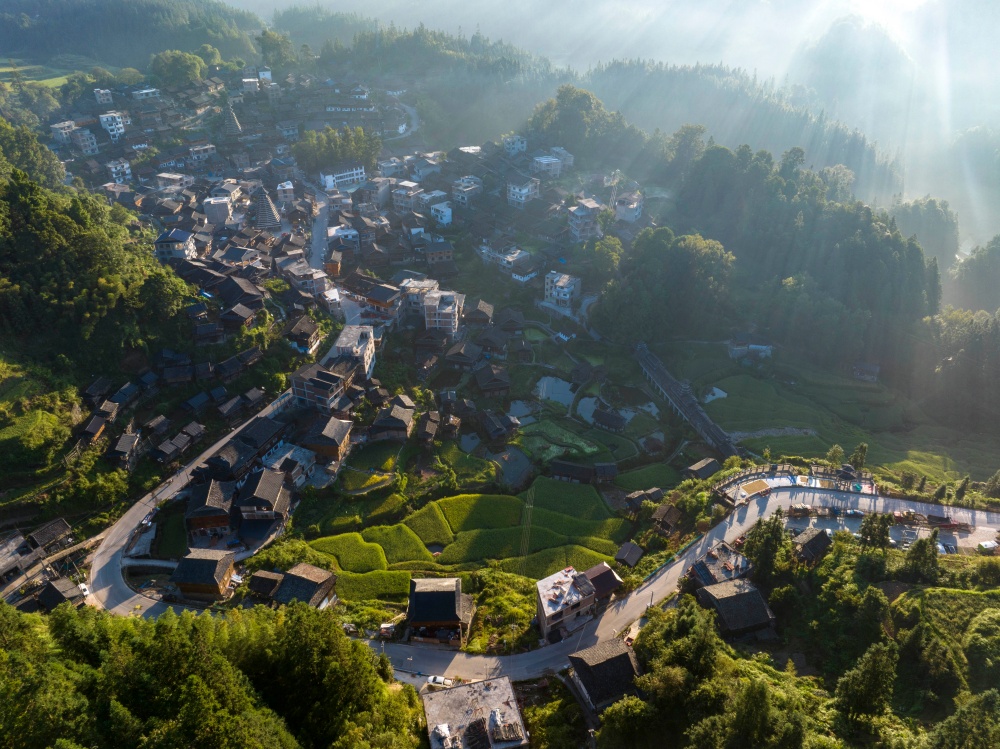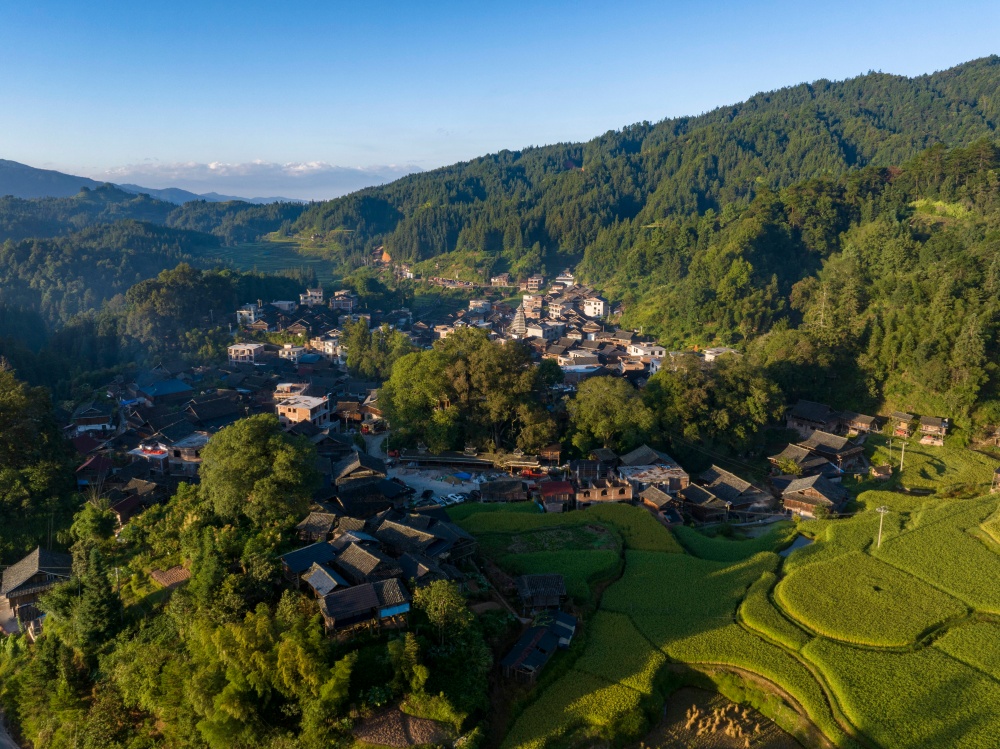 9月17日,在貴州省從江縣高增鄉(xiāng)岜扒村拍攝的秋景(無(wú)人機(jī)照片)。