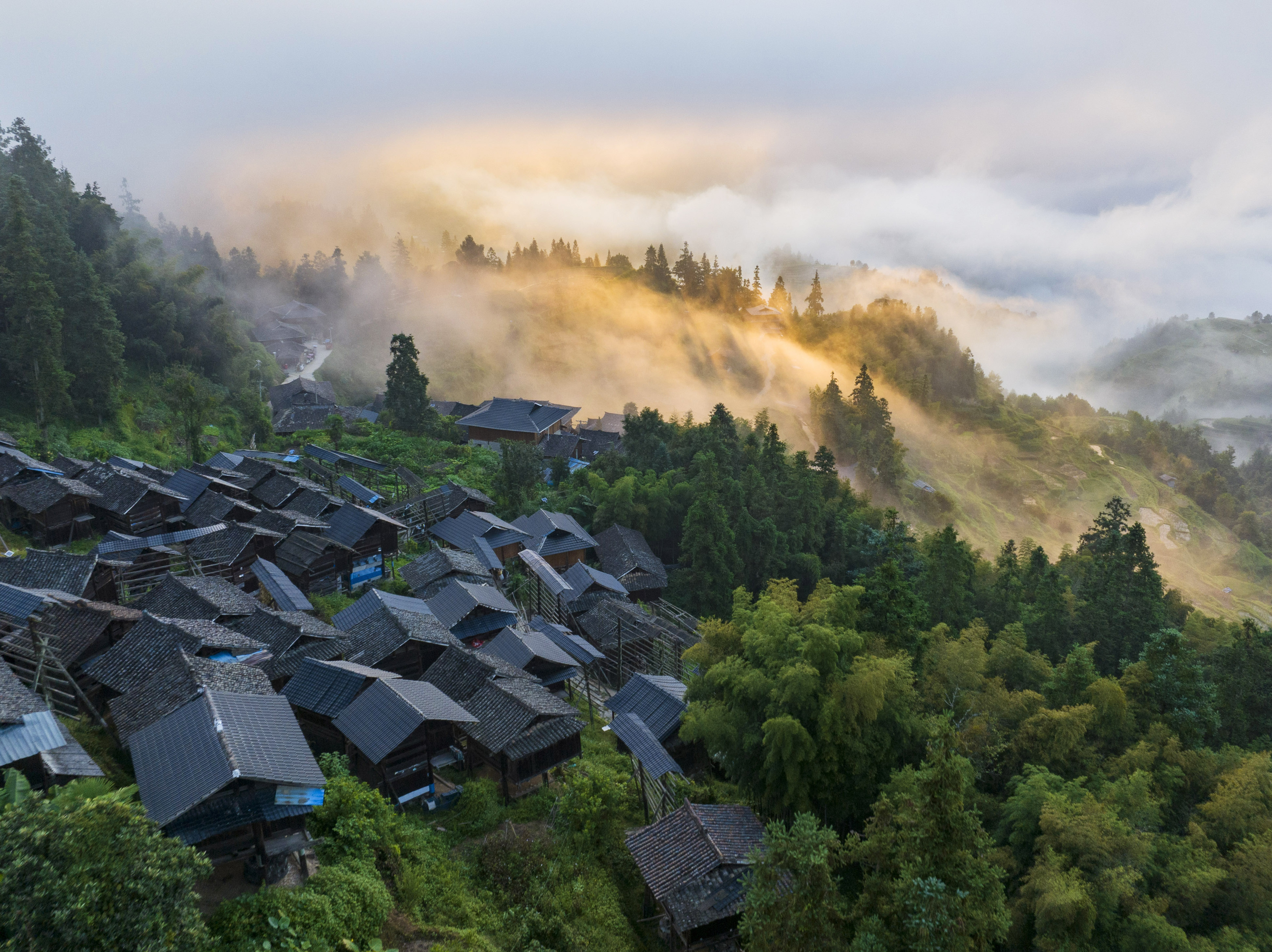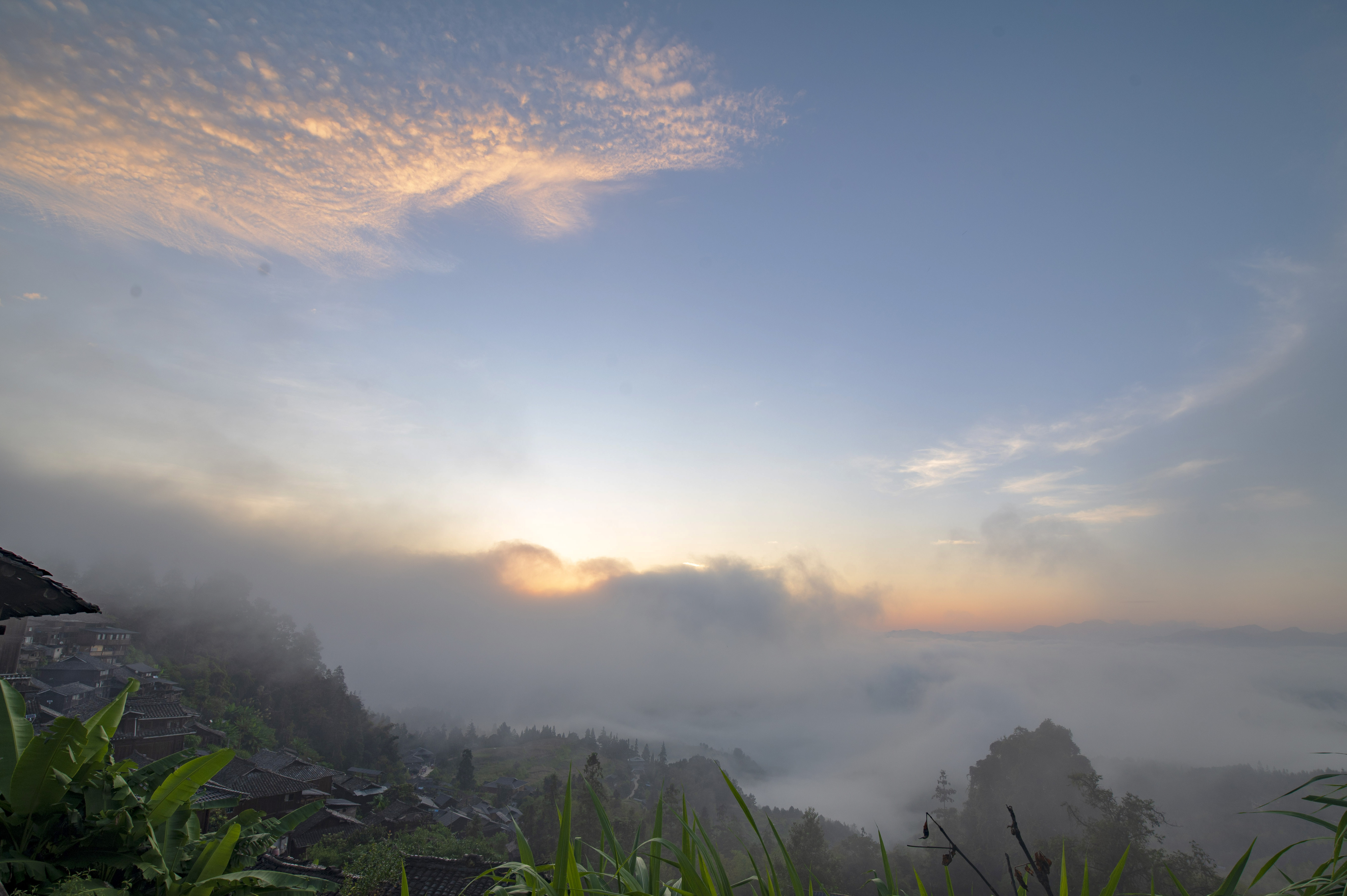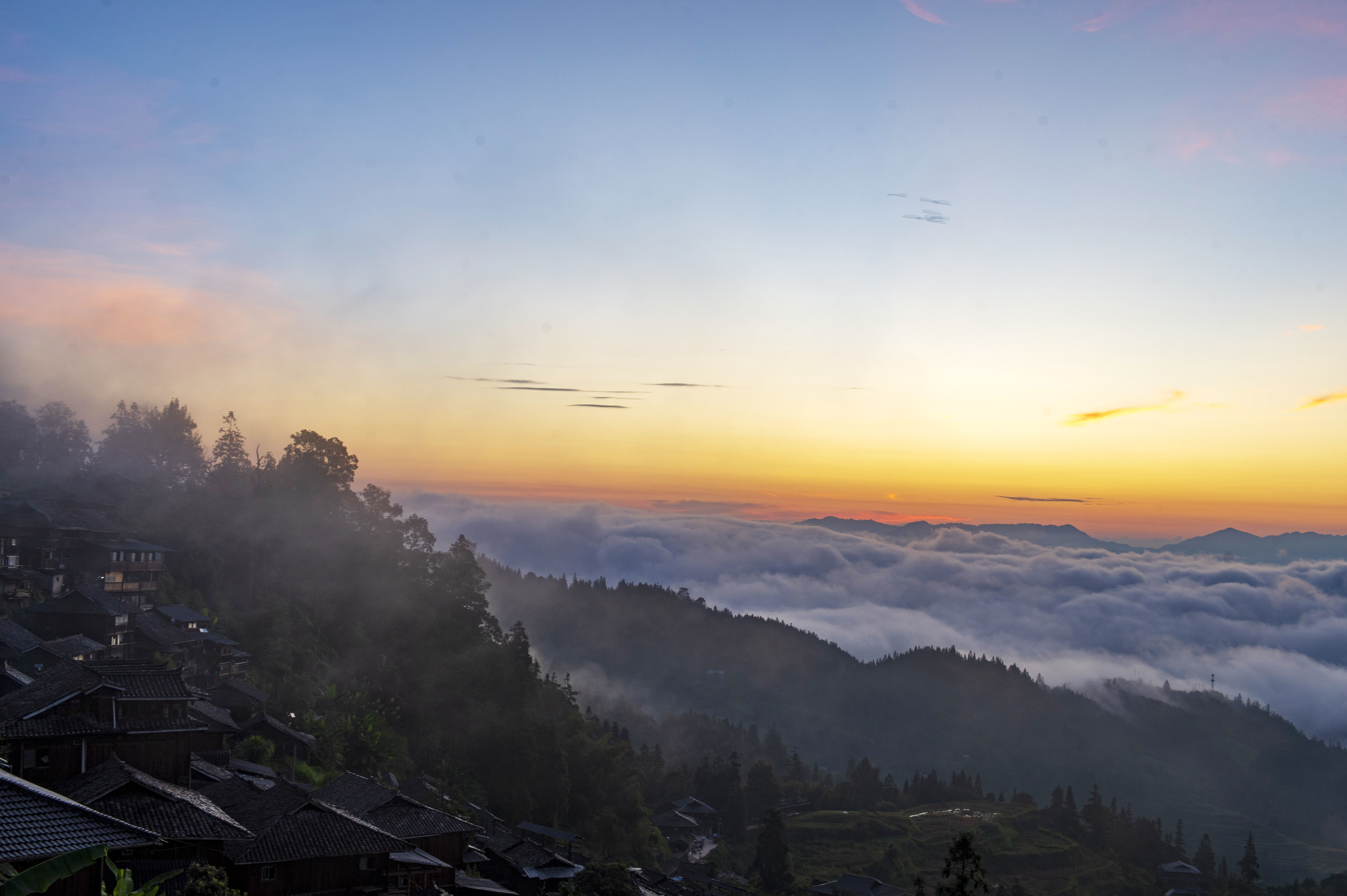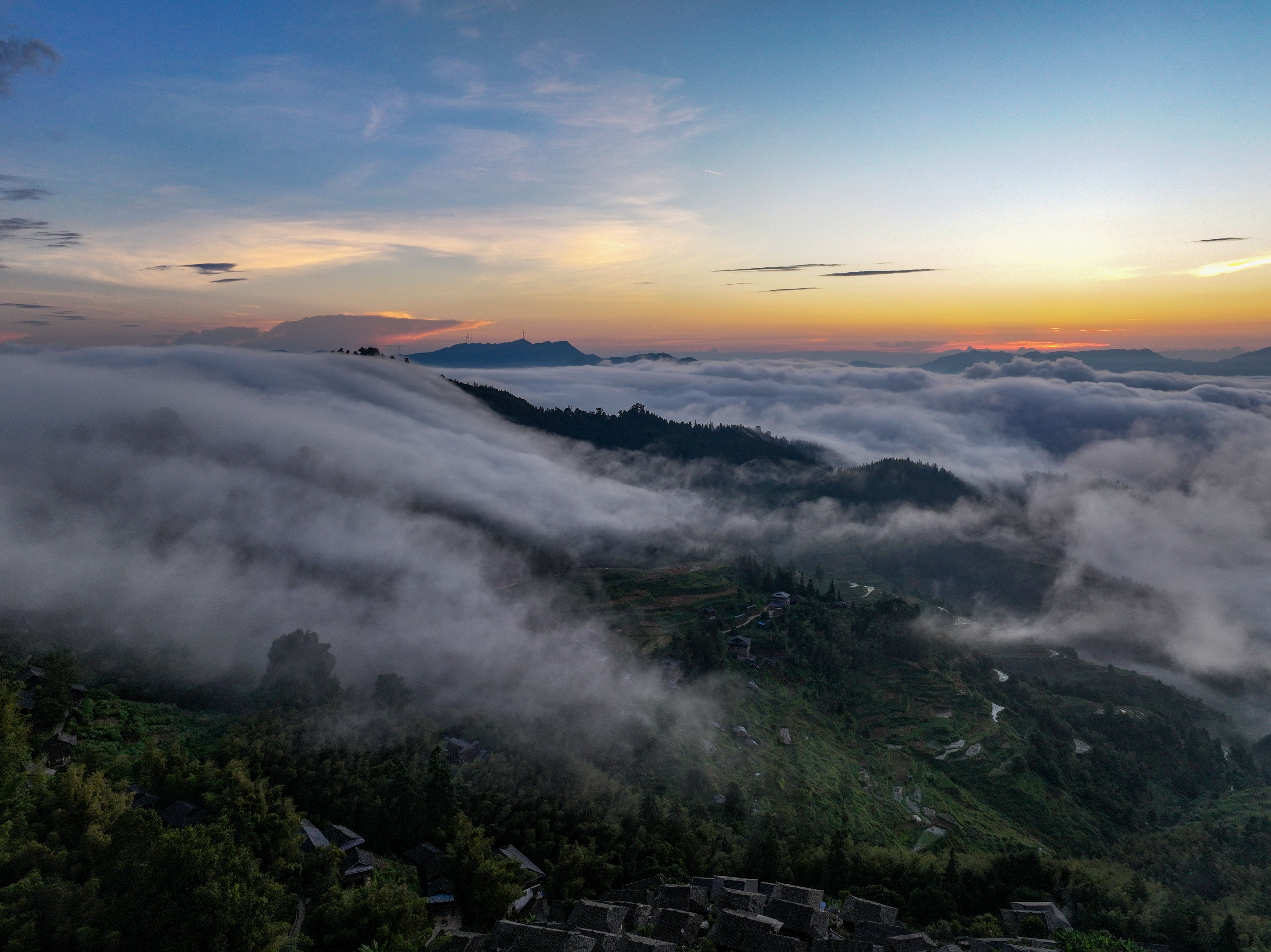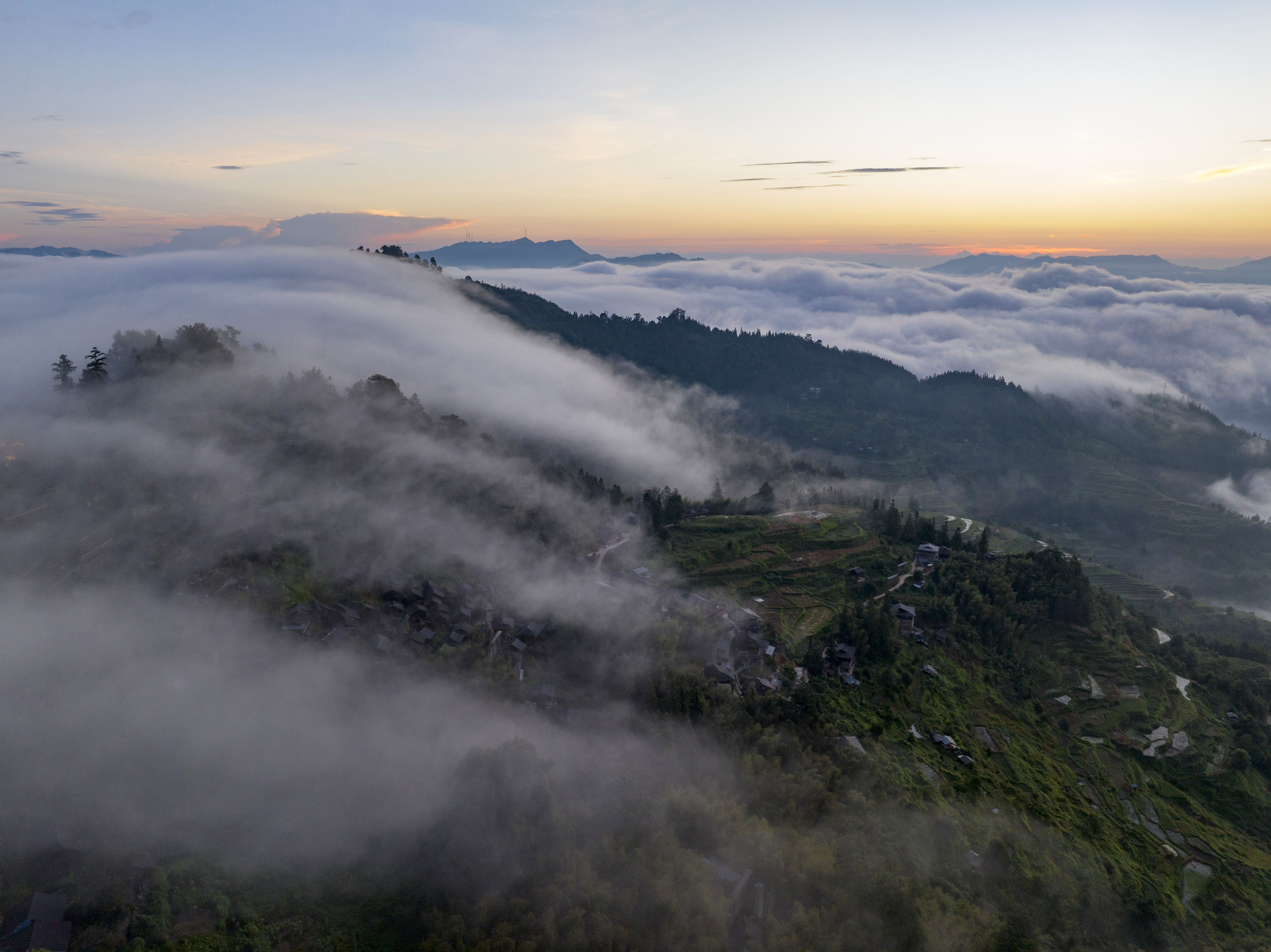 貴州岜沙苗寨現(xiàn)壯麗日出云海
